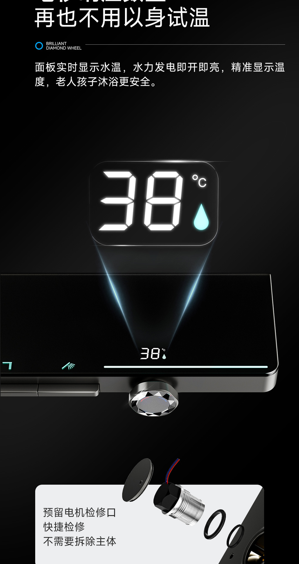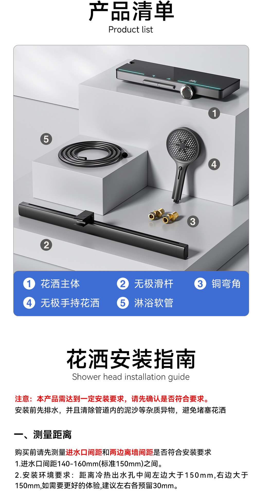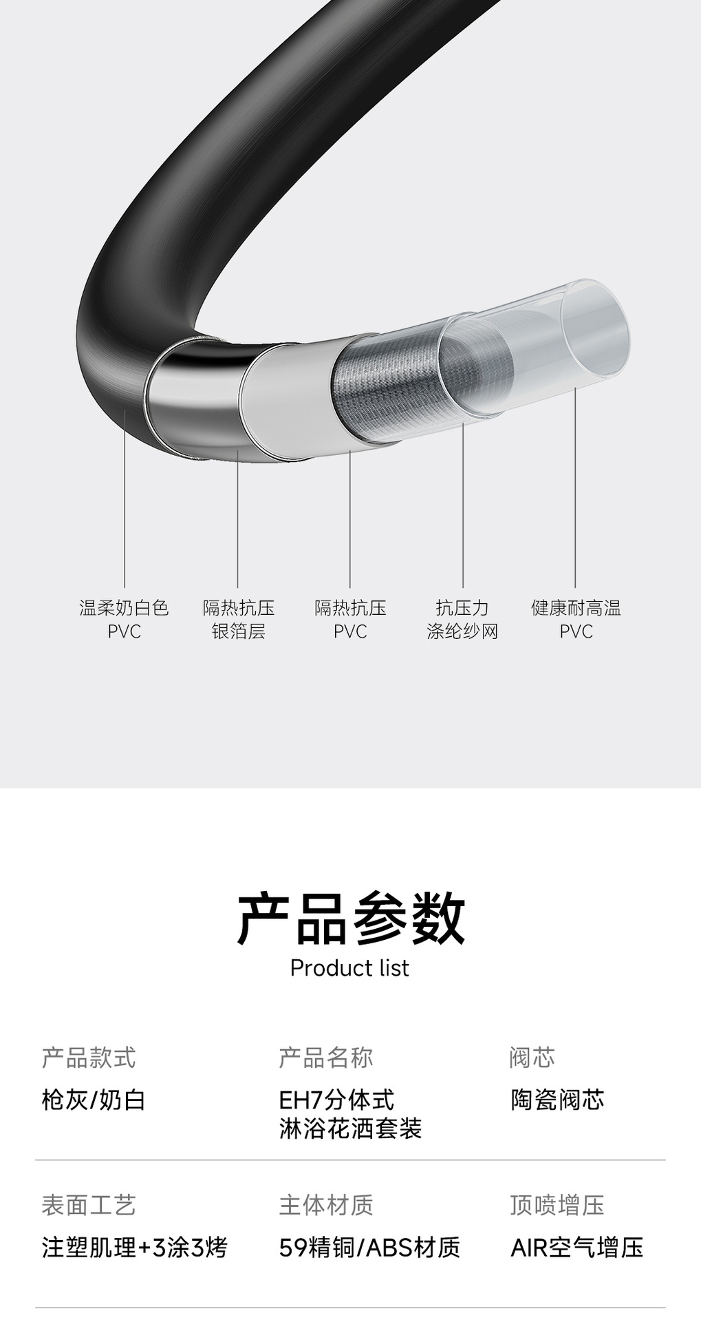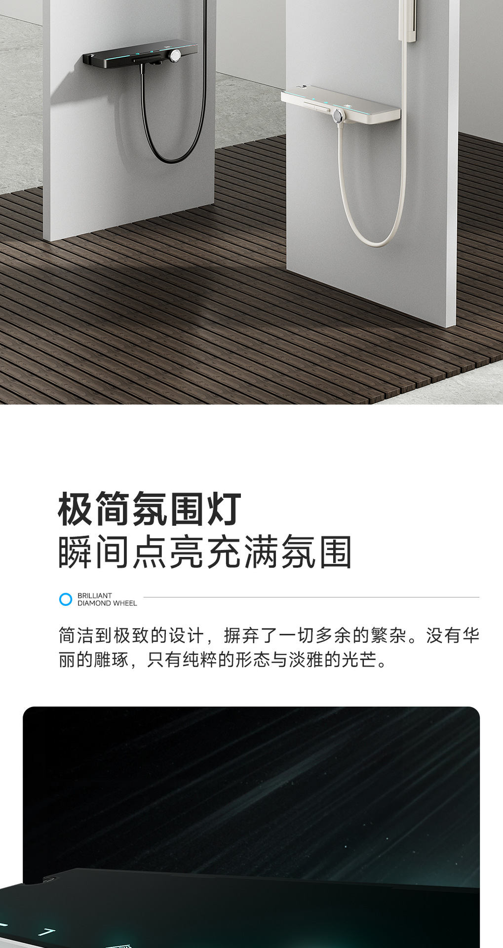 리야 브릴리언트 다이아몬드 휠 2단 샤워 헤드 세트, 분위기 있는 대용량 샤워 헤드, 표면 장착형 심플 샤워 헤드