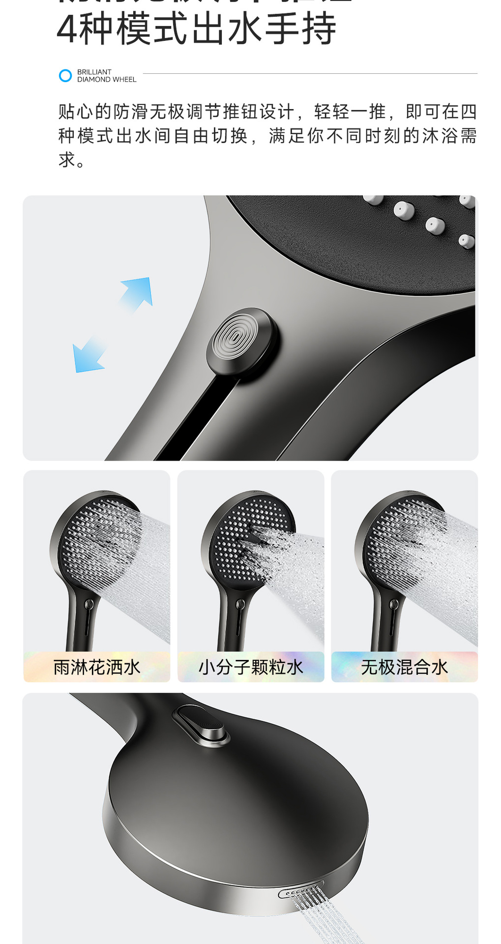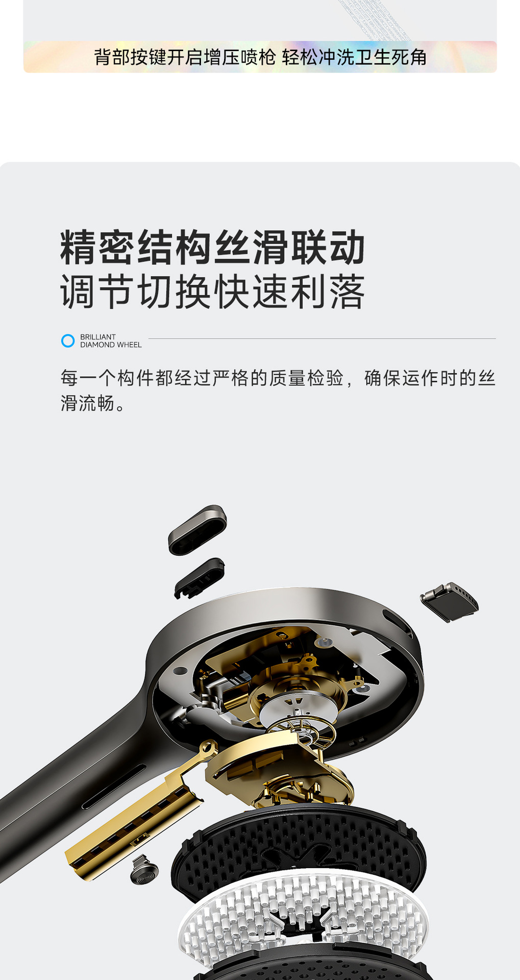 리야 브릴리언트 다이아몬드 휠 2단 샤워 헤드 세트, 분위기 있는 대용량 샤워 헤드, 표면 장착형 심플 샤워 헤드스토어 가기