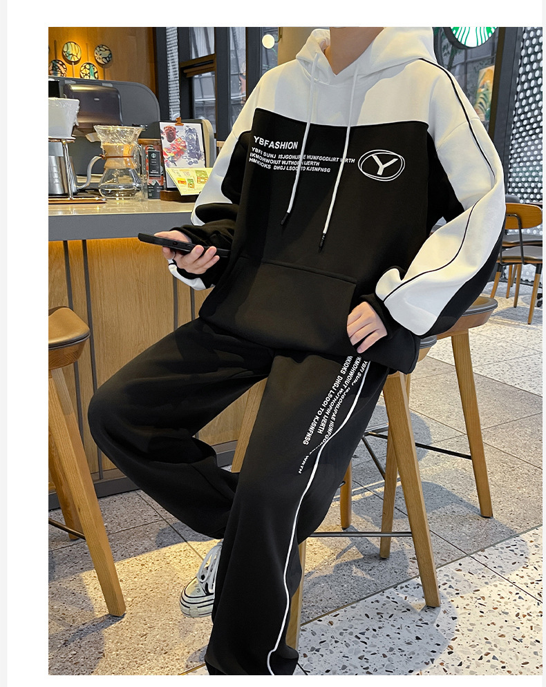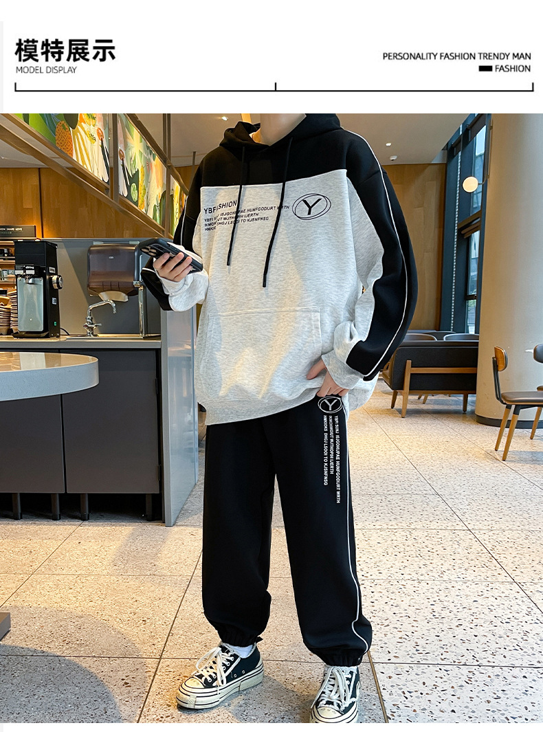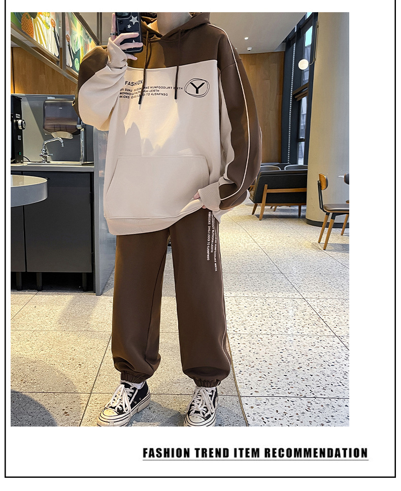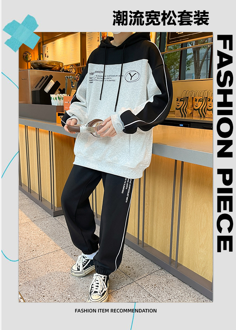 남성용 봄, 가을 청소년 트렌디 브랜드 풀오버 스웨트 셔츠와 스웨트 팬츠 세트, 루즈한 스포츠 및 레저, 다재다능하고 멋진 투피스 세트스토어 가기