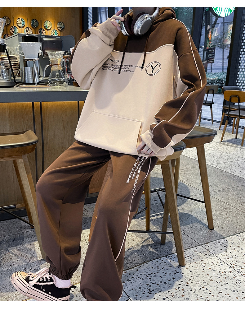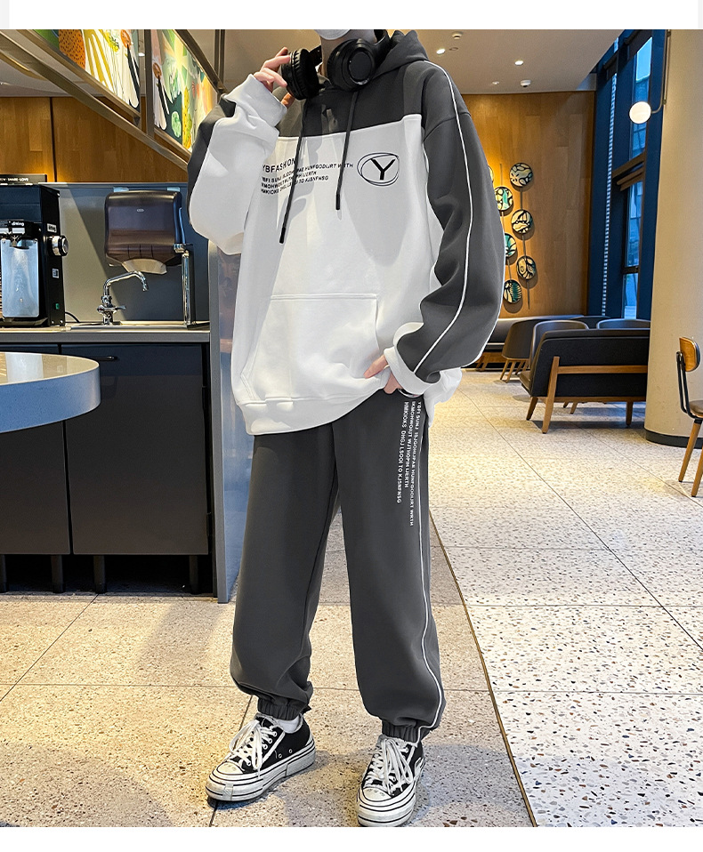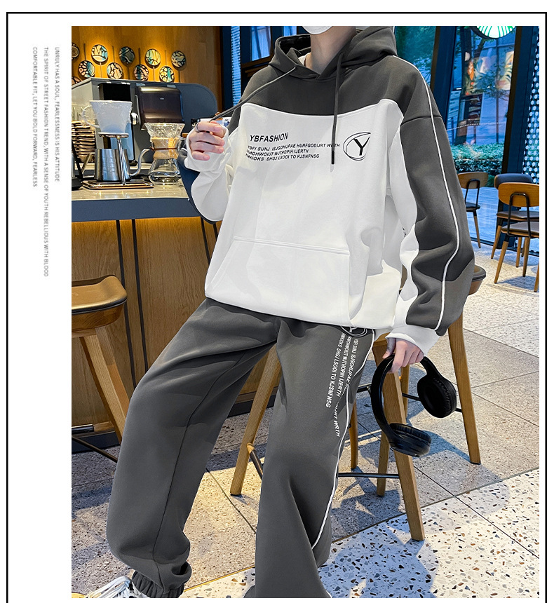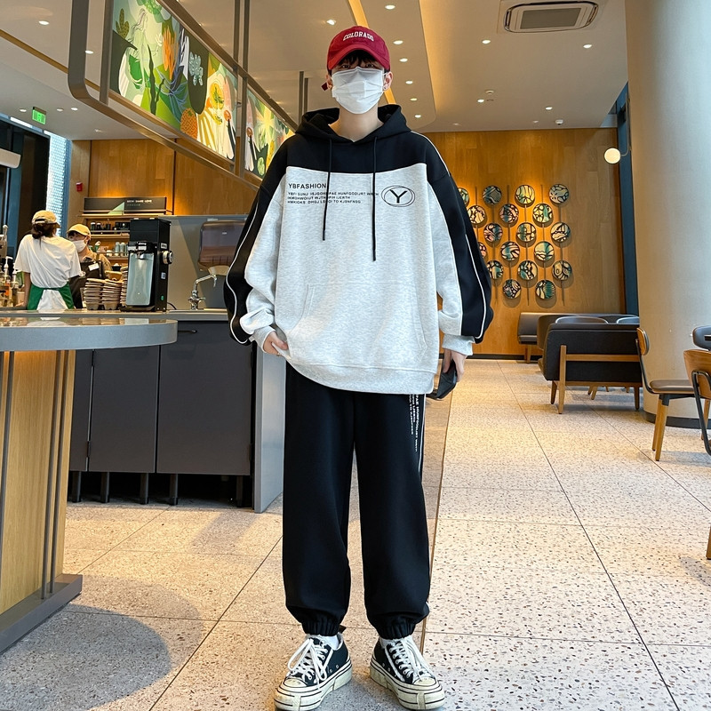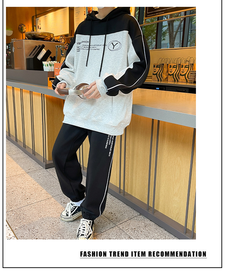 남성용 봄, 가을 청소년 트렌디 브랜드 풀오버 스웨트 셔츠와 스웨트 팬츠 세트, 루즈한 스포츠 및 레저, 다재다능하고 멋진 투피스 세트스토어 가기