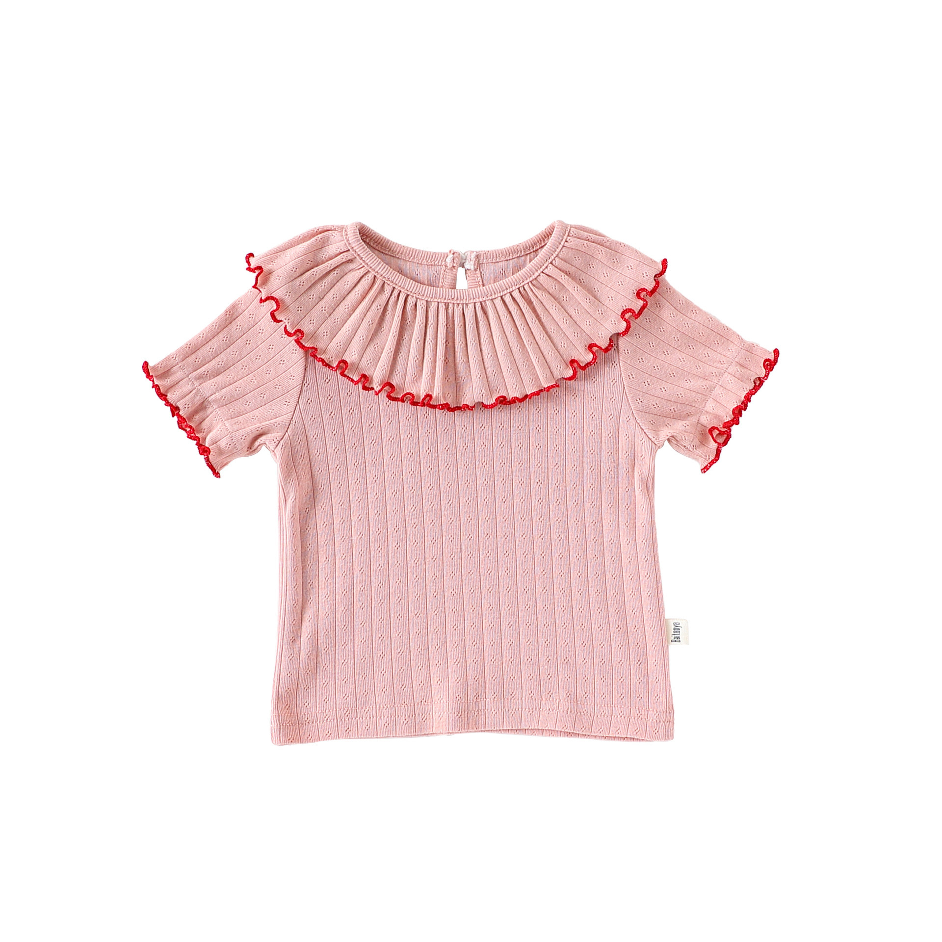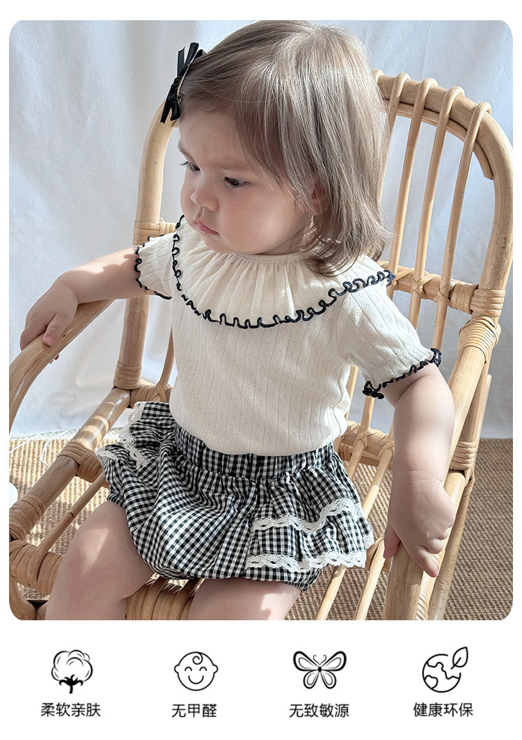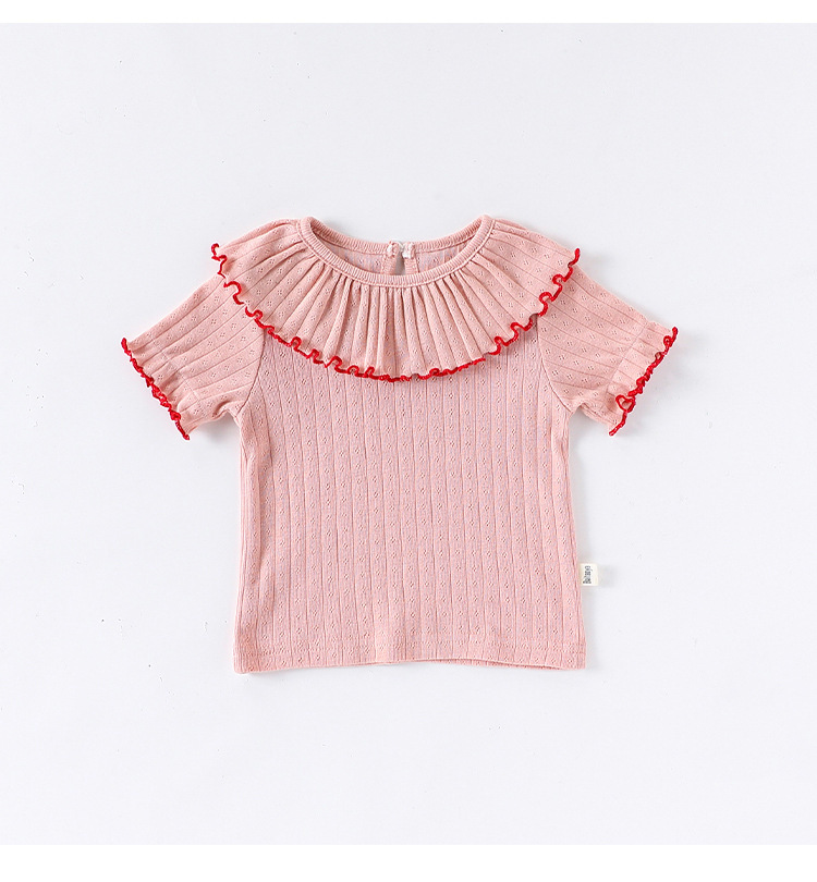 2026년 신상 여아 레이스 반팔 티셔츠 여름옷 여자 아기 레이스 칼라 상의 유아 순면 신축성 의류