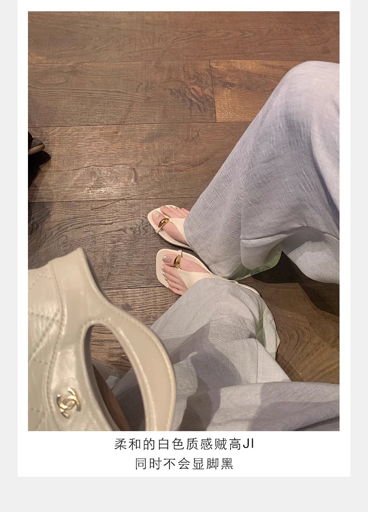 요정풍 비치 2025 신상 슬립온 스퀘어토 만능 플랫 슬리퍼 여성 여름용