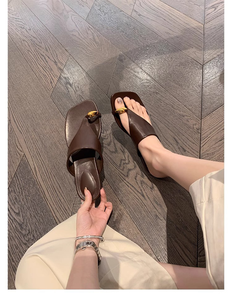 요정풍 비치 2025 신상 슬립온 스퀘어토 만능 플랫 슬리퍼 여성 여름용스토어 가기
