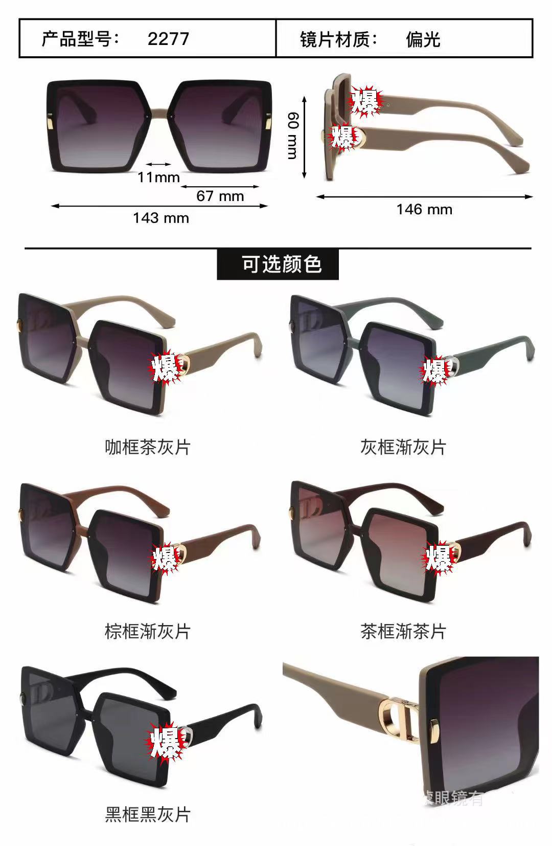 새로운 패셔너블한 선글라스, 편광 대형 프레임, 한국식 고급 선글라스, 얼굴 슬리밍, 국경 간 인터넷 연예인 생방송, 인기 판매 모델