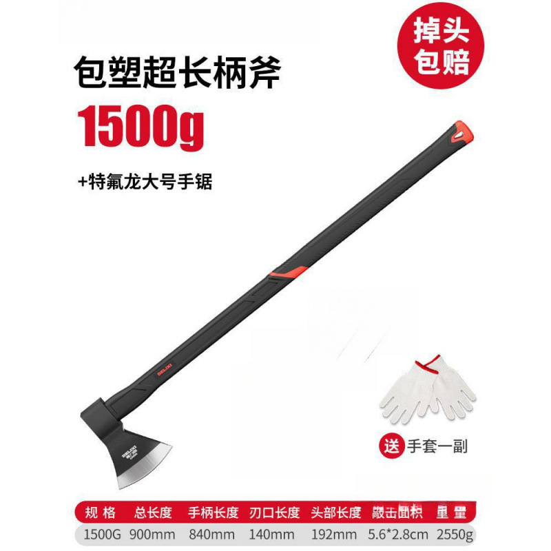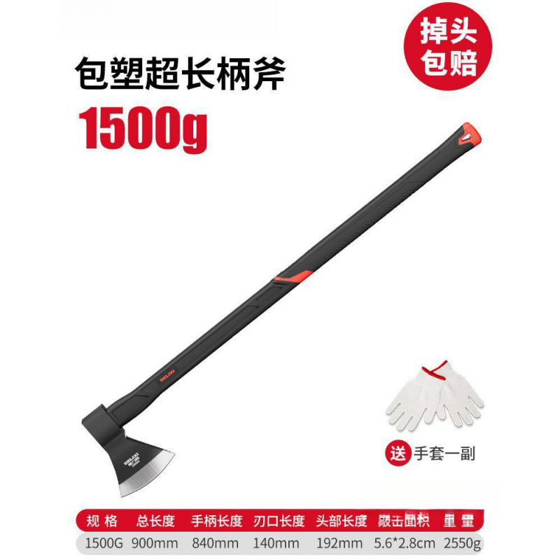 • [망치와 도끼 겸용] 플라스틱 코팅된 초장손 도끼 1500G(장갑 포함)로 강철 막대를 부러뜨릴 수 있습니다!
