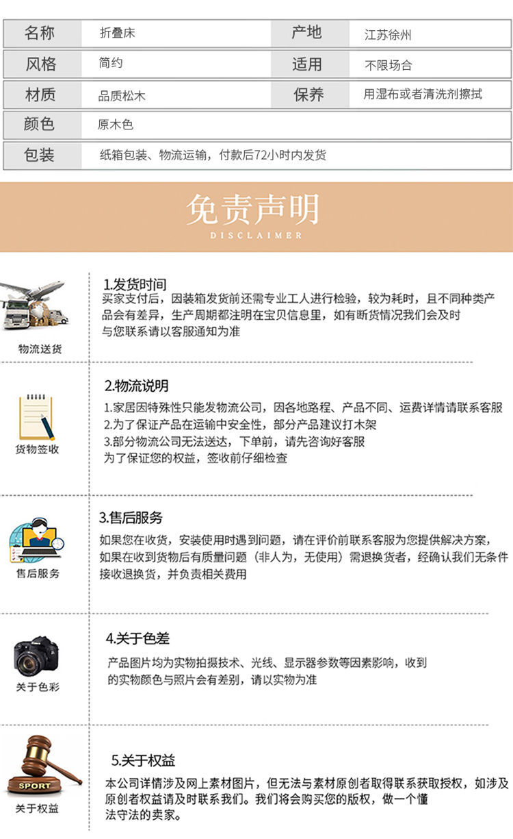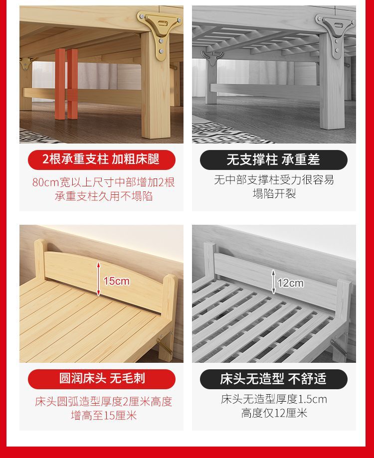 접이식 원목 침대 시트, 1인용 가정용 낮잠 침대, 임대용 침대, 경제적인 설치가 필요 없는 두꺼운 성인용 낮잠 침대