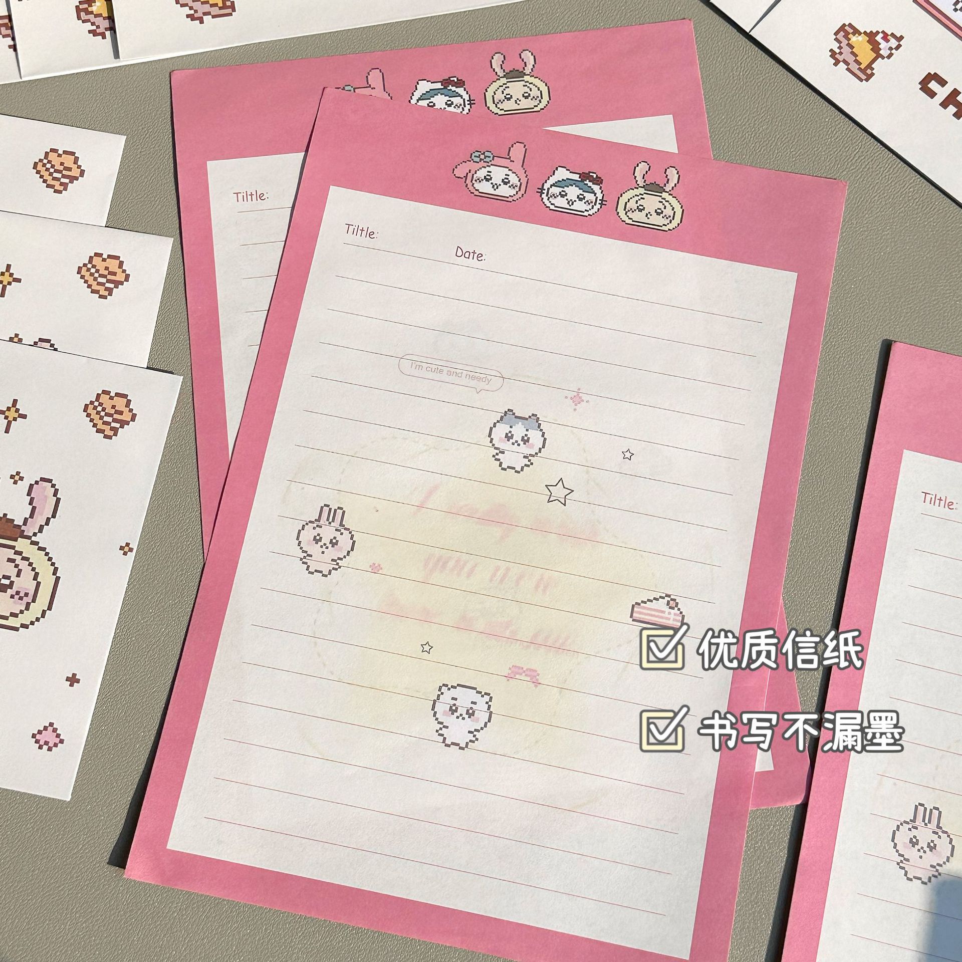 픽셀 스타일 Jiyikawa Xiaoba 편지지 세트 만화 귀여운 기능 고가치 생일 휴일 편지 뗏목
