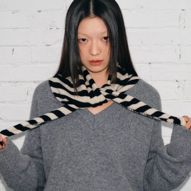 100% 메리노 호주 양모 스카프 가을, 겨울 새로운 삼각형 니트 작은 목도리 단색 따뜻한 목 보호대스토어 가기
