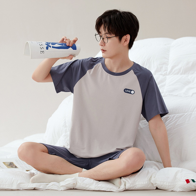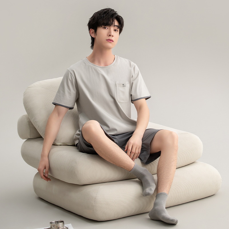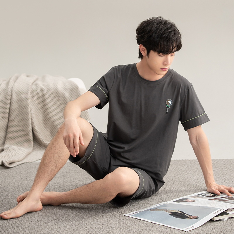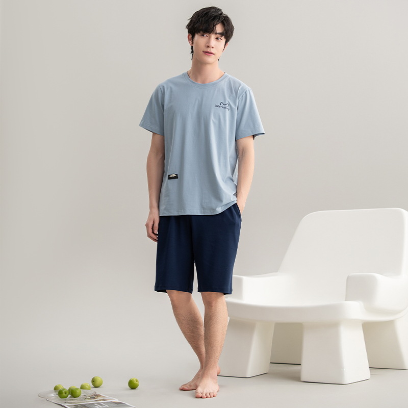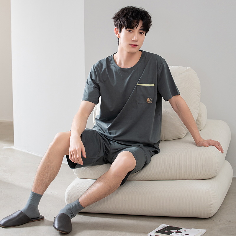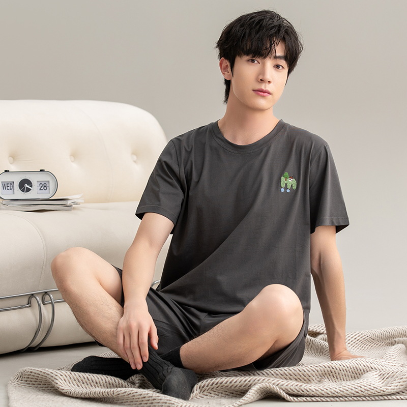 클래스 A 항균 남성용 순면 잠옷 남성용 여름 반팔 반바지 캐주얼 웨어러블 코튼 홈웨어 세트
