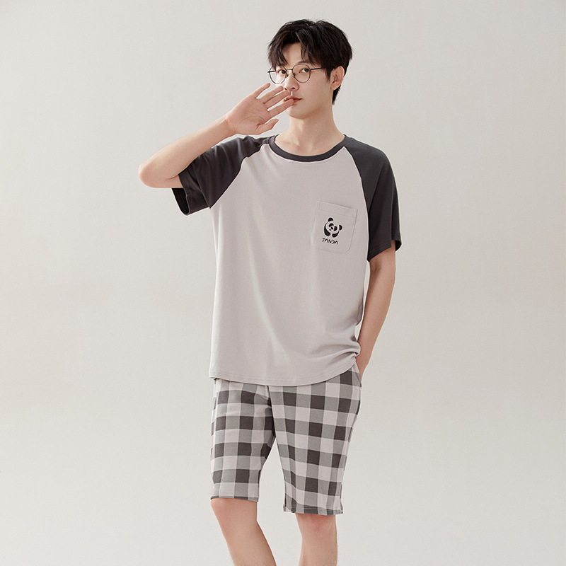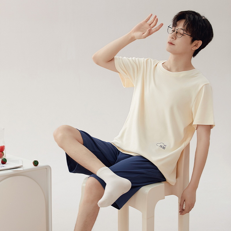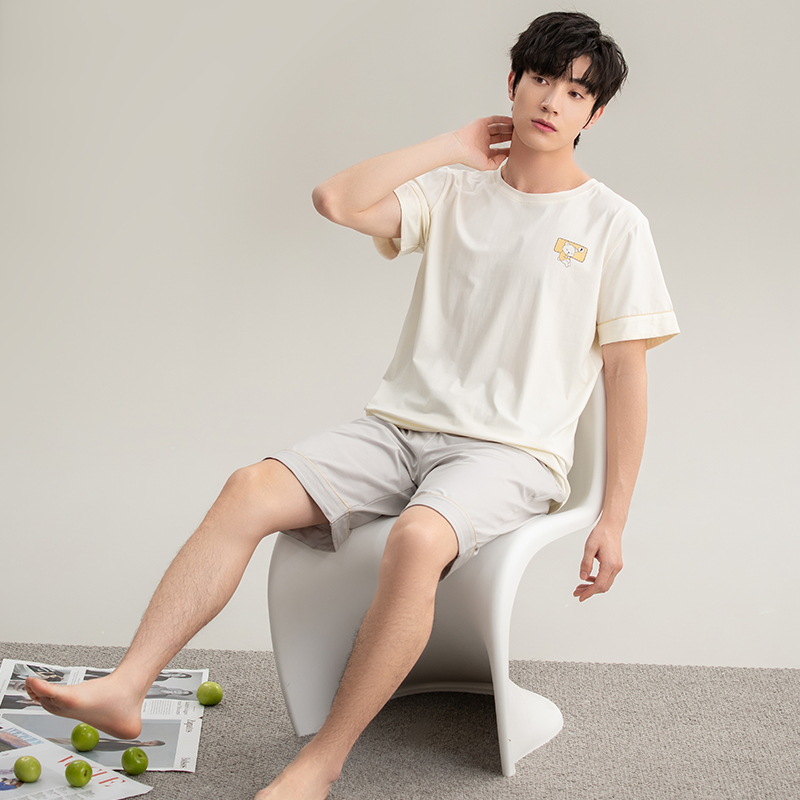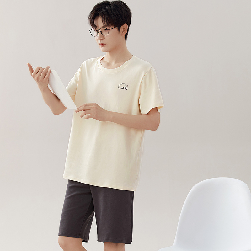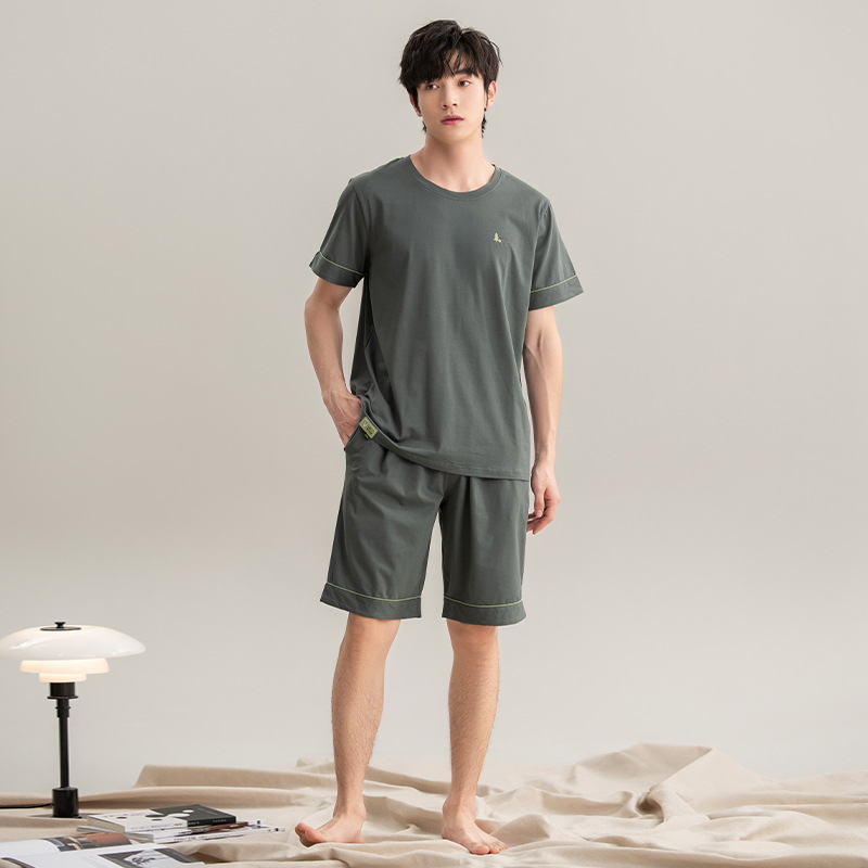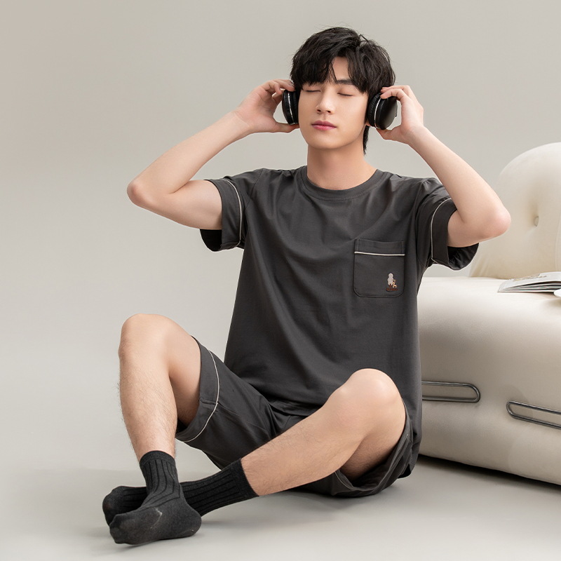 클래스 A 항균 남성용 순면 잠옷 남성용 여름 반팔 반바지 캐주얼 웨어러블 코튼 홈웨어 세트