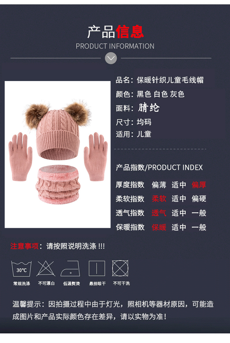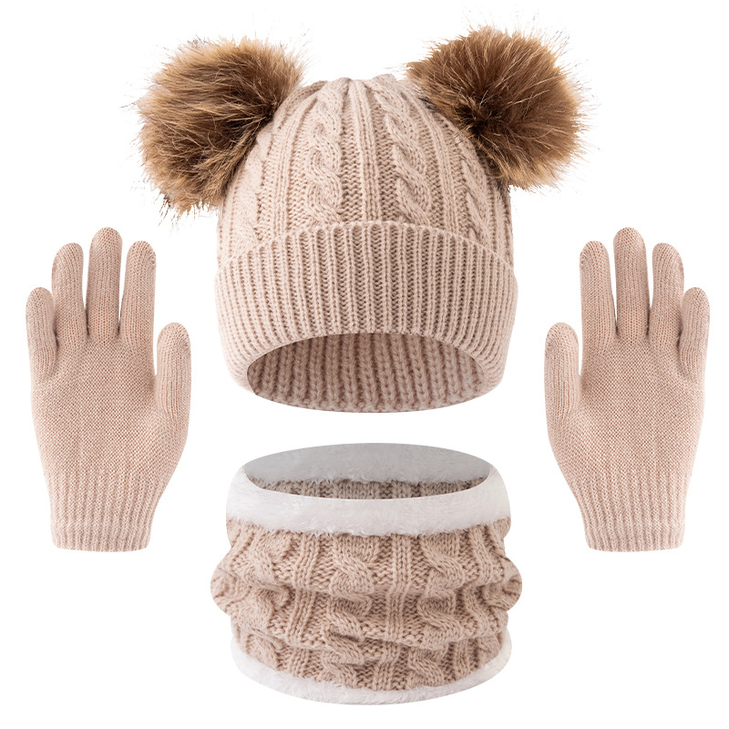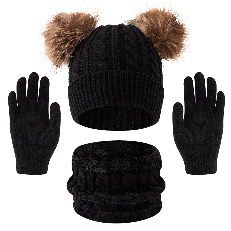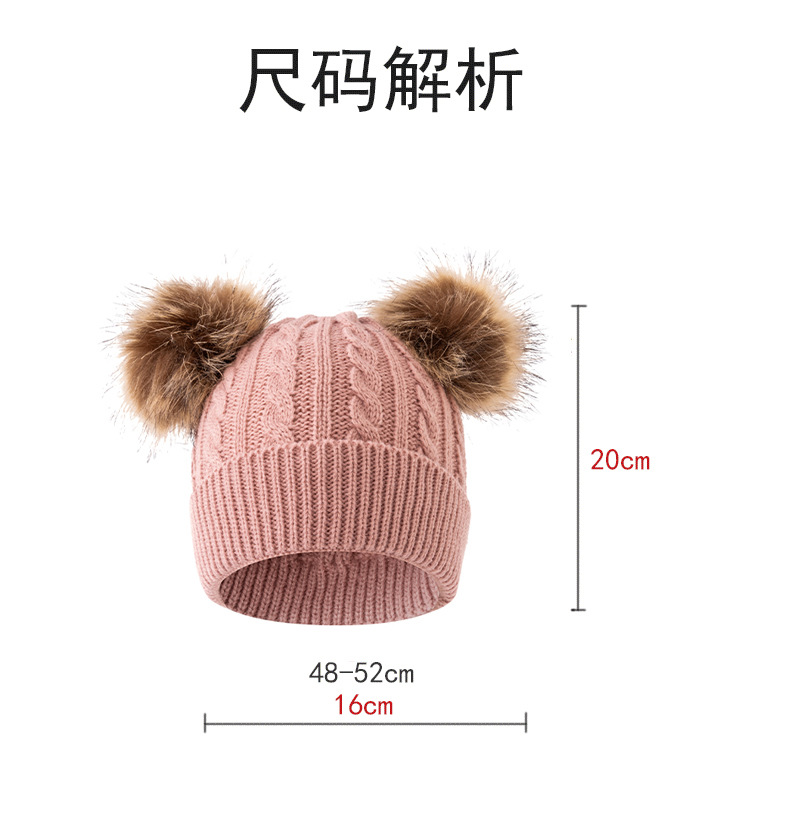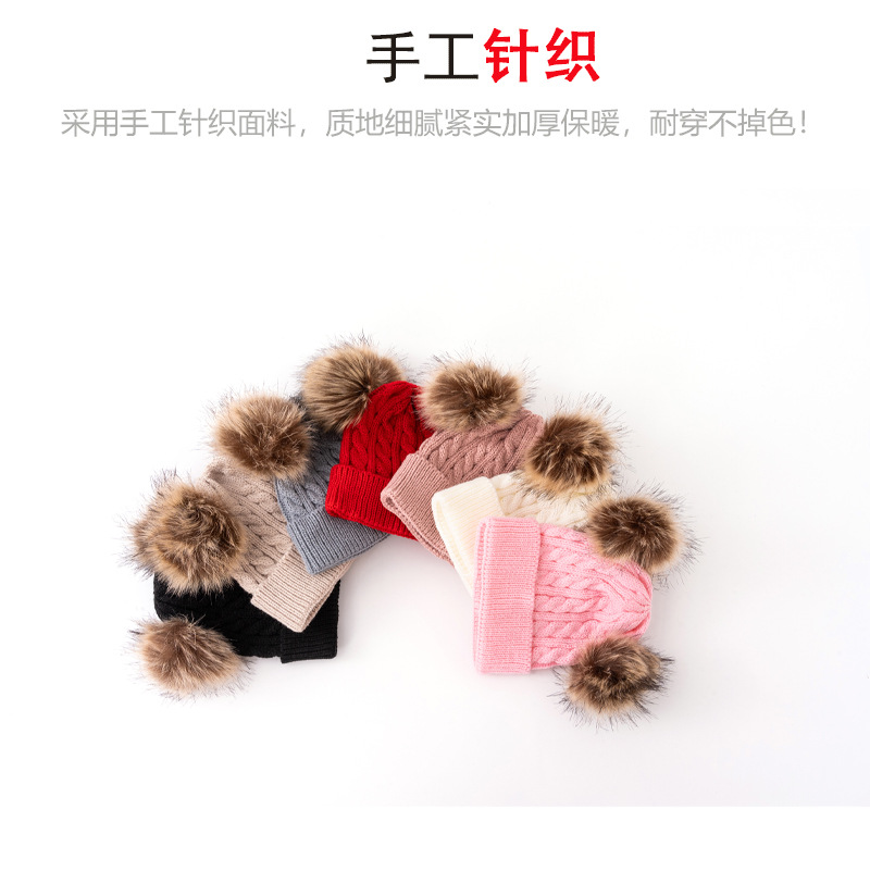 어린이 모자 가을, 겨울 아기 모직 니트 따뜻한 모자 귀여운 더블 모피 공 외출 방한 풀오버 모자