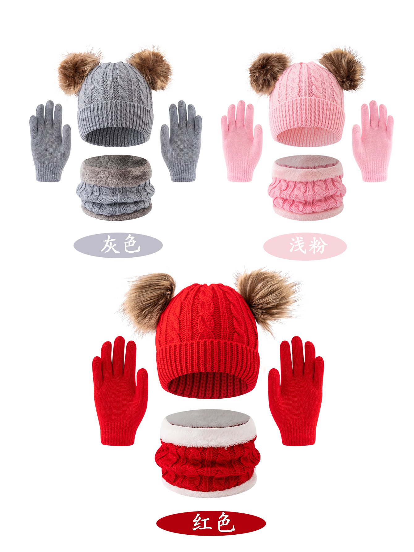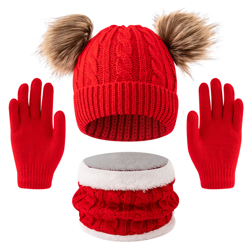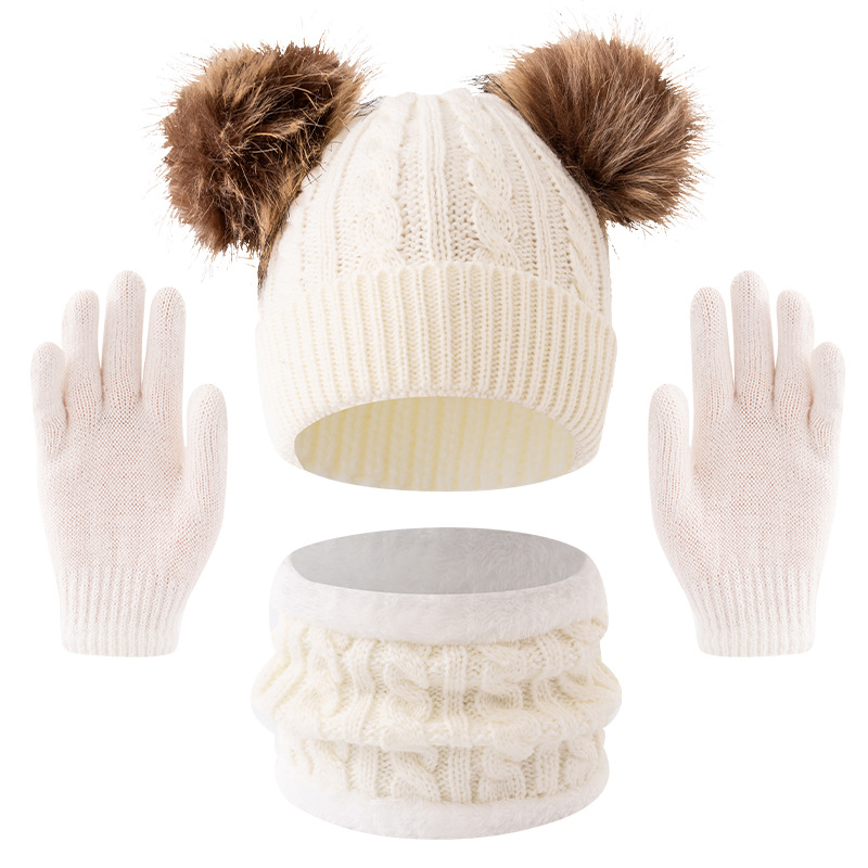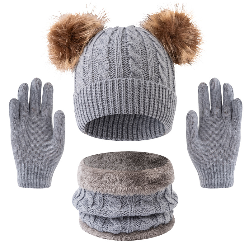 어린이 모자 가을, 겨울 아기 모직 니트 따뜻한 모자 귀여운 더블 모피 공 외출 방한 풀오버 모자