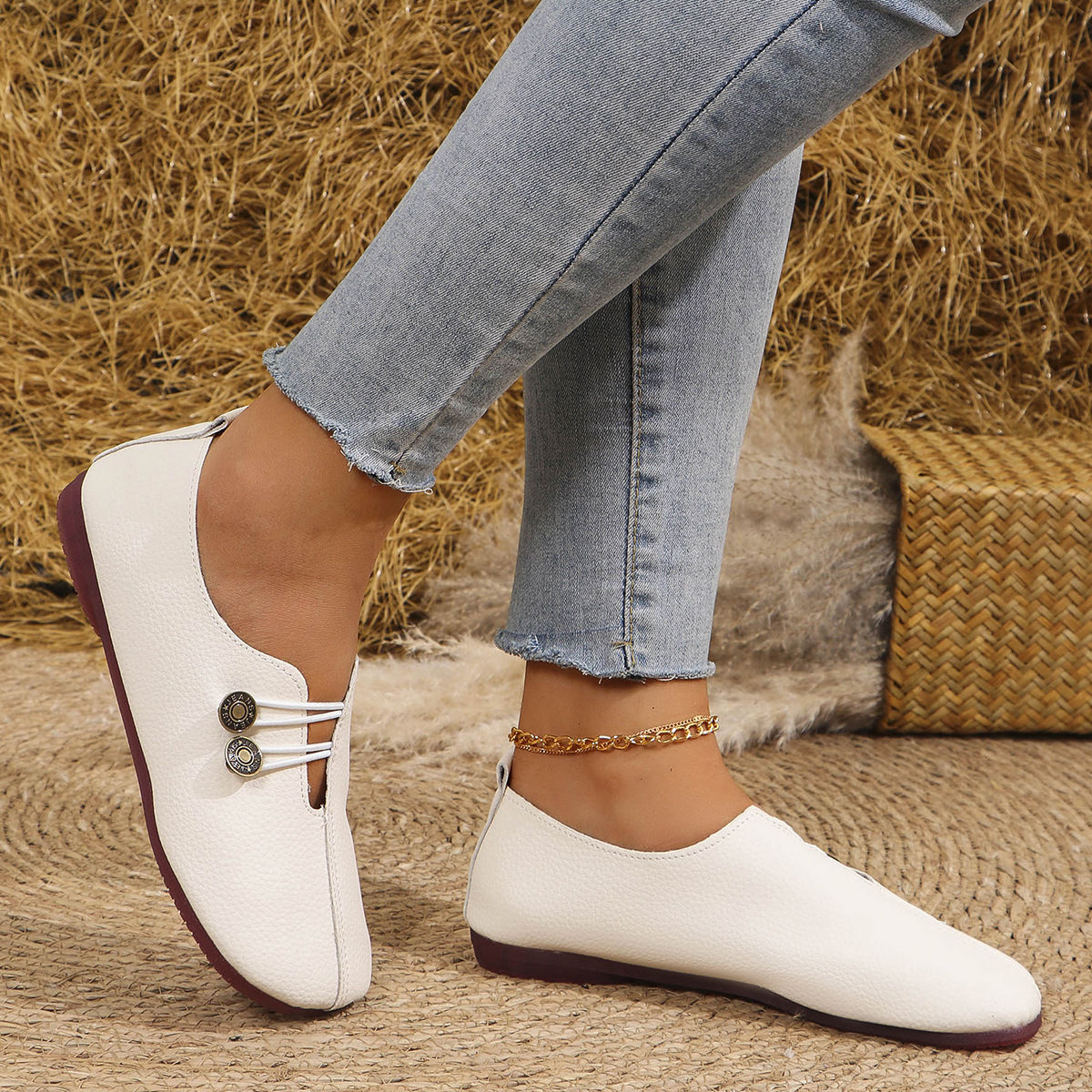 국경 간 대외 무역 2025 여름과 가을 새로운 부드러운 가죽 플랫 캐주얼 신발 여성 라운드 발가락 얕은 입 슬립 온 대형 여성 신발