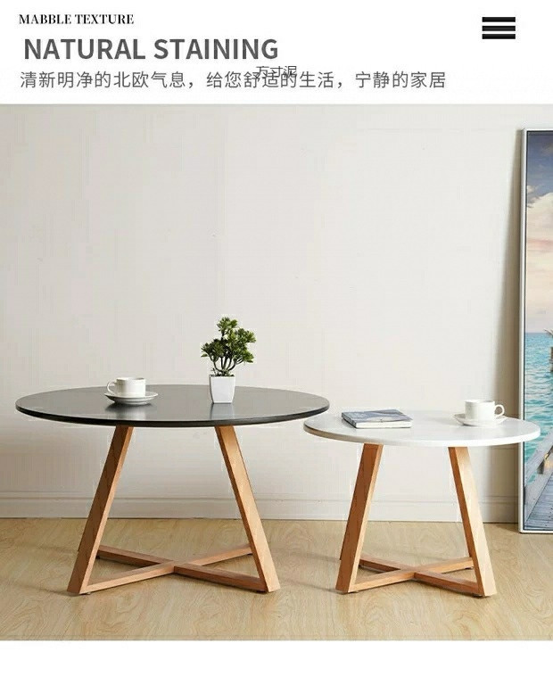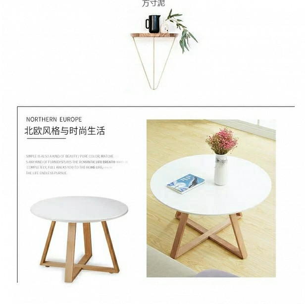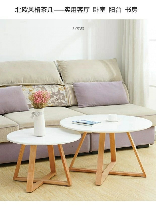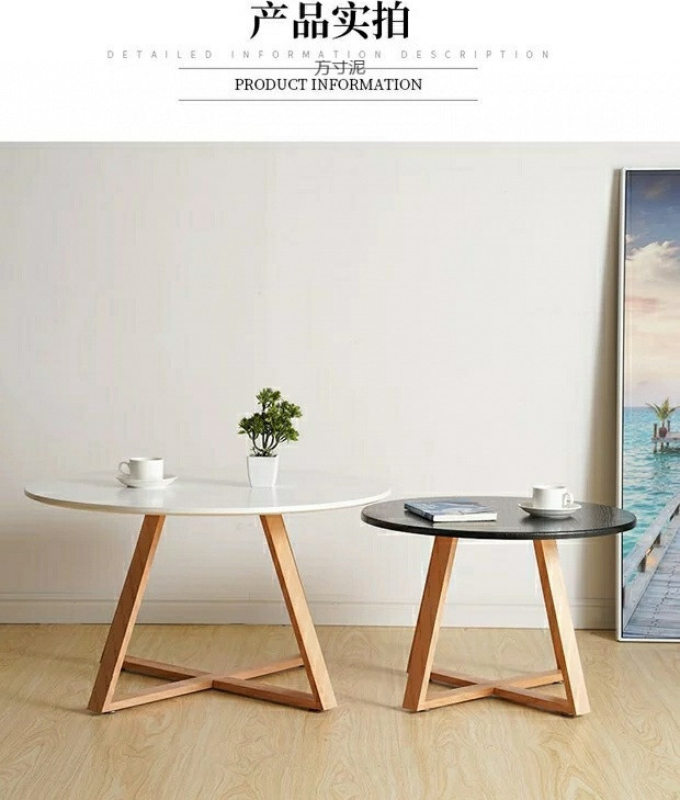 크림 스타일 작은 커피 테이블 작은 아파트 둥근 단단한 나무 테이블 다리 커피 테이블 테이블 거실 홈 간단한 벌크 홀 작은 테이블 공장스토어 가기
