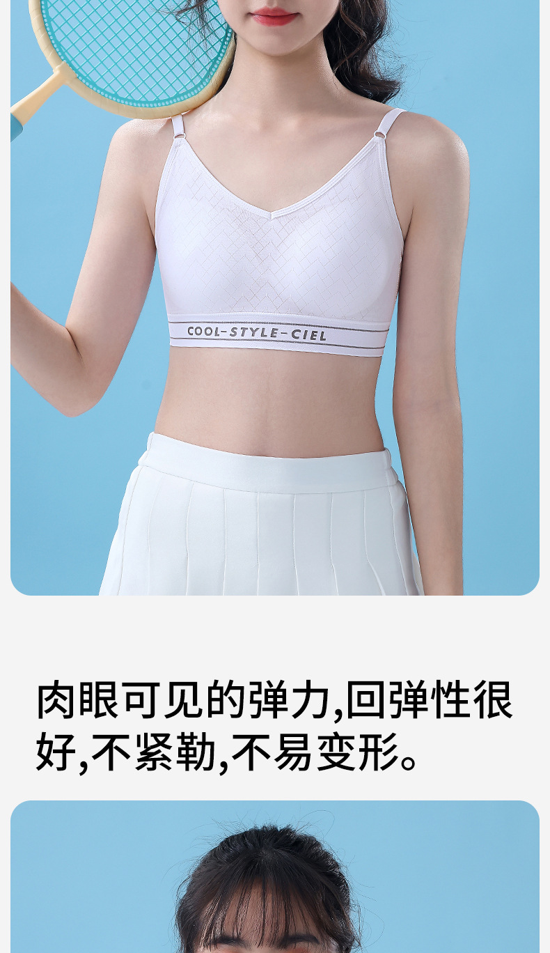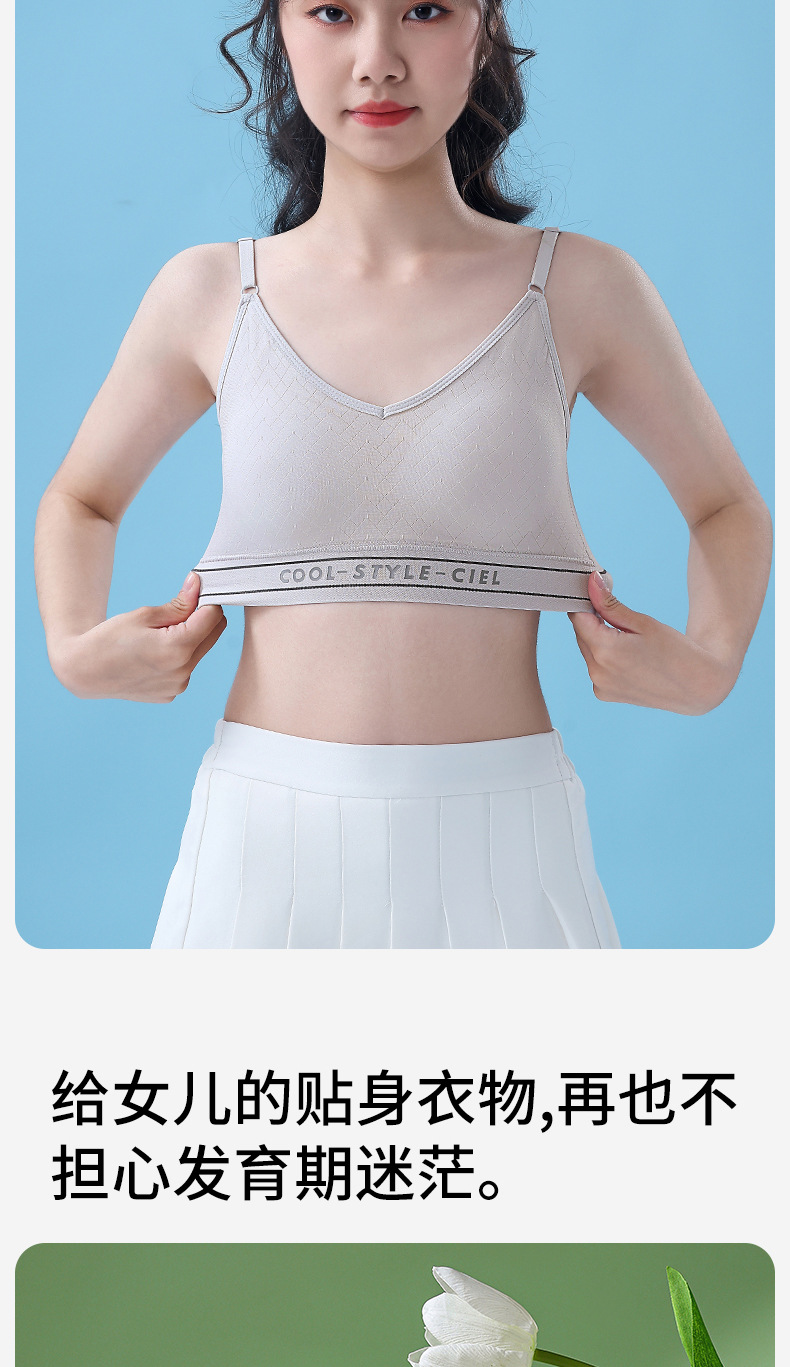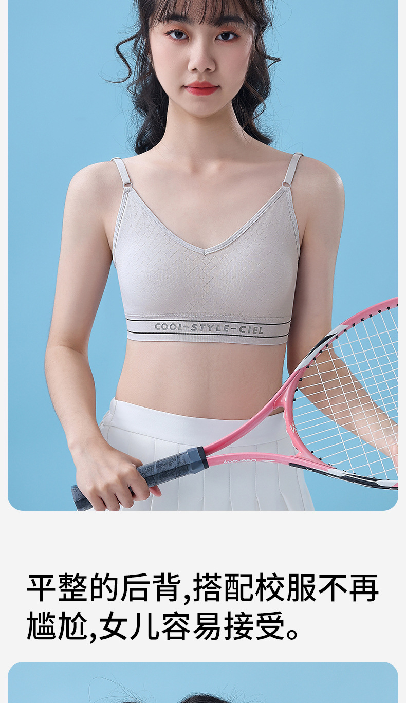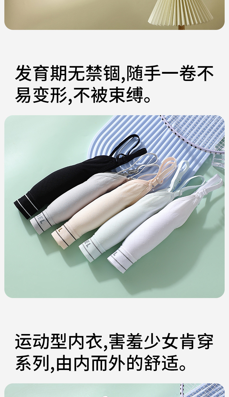 여성 발달기 여아를 위한 얇고 무봉제 조끼 스타일 스포츠 브라, 노출 방지, 편안하고 통기성이 뛰어난 고등학생 브라