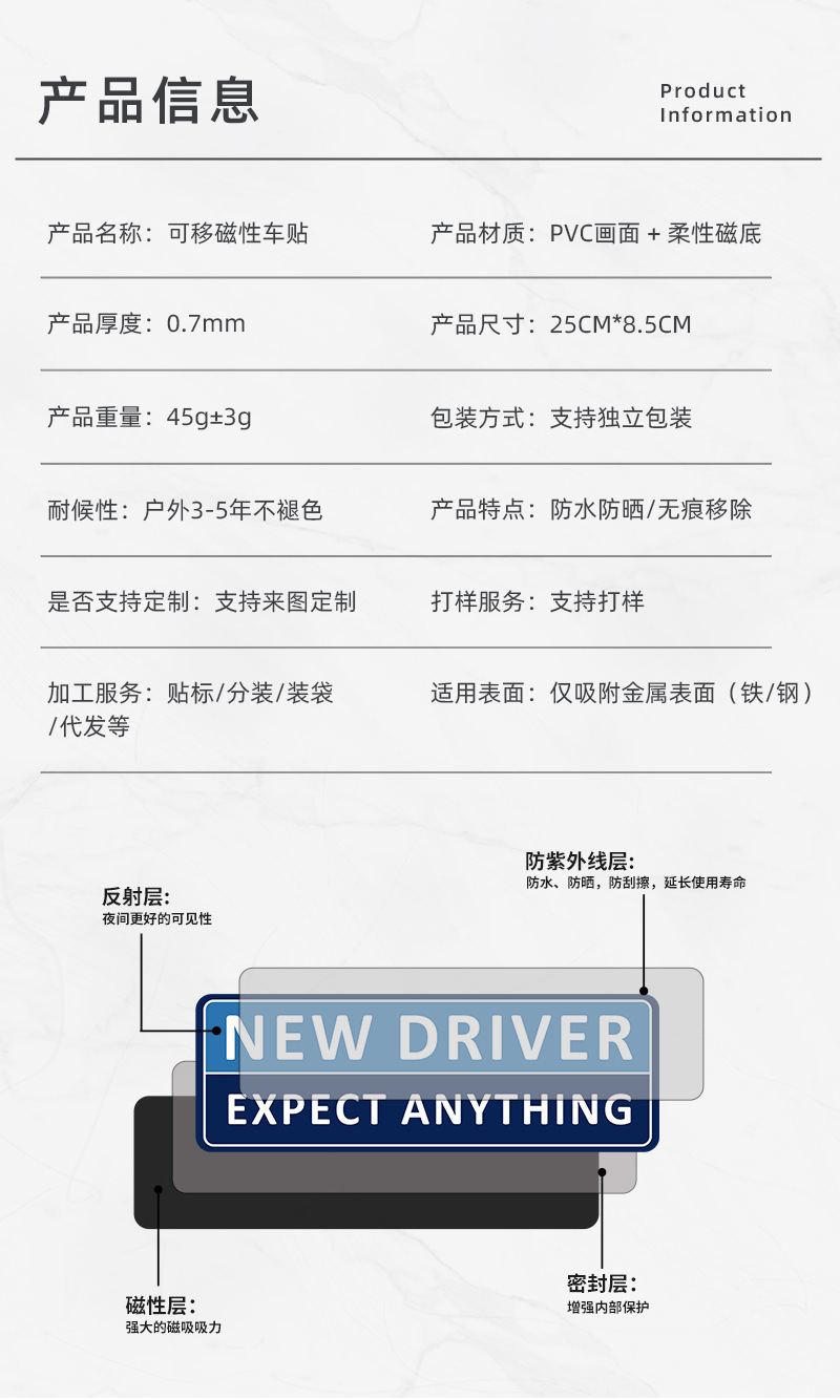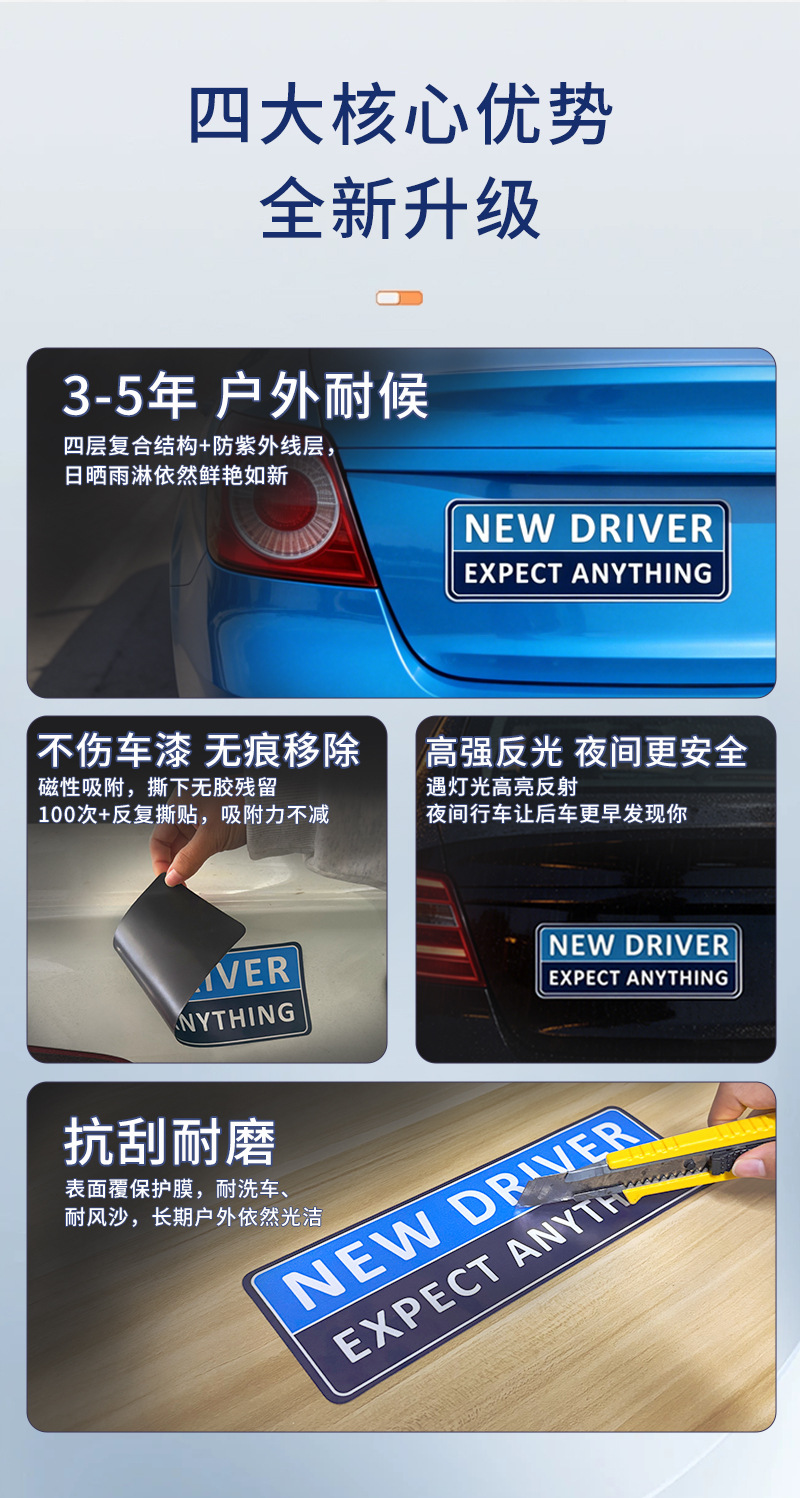 Amazon 베스트셀러 초보 운전자 자석 스티커 고품질 반사 자동차 스티커 방수 및 자외선 차단제 자석 자동차 스티커
