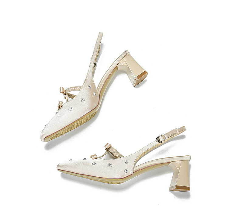 761-27 여성용 뒷면이 빈 리본이 달린 아름다운 하이힐 신발 2025 새로운 여름 스타일 스커트와 함께 착용하기 좋은 두꺼운 굽스토어 가기