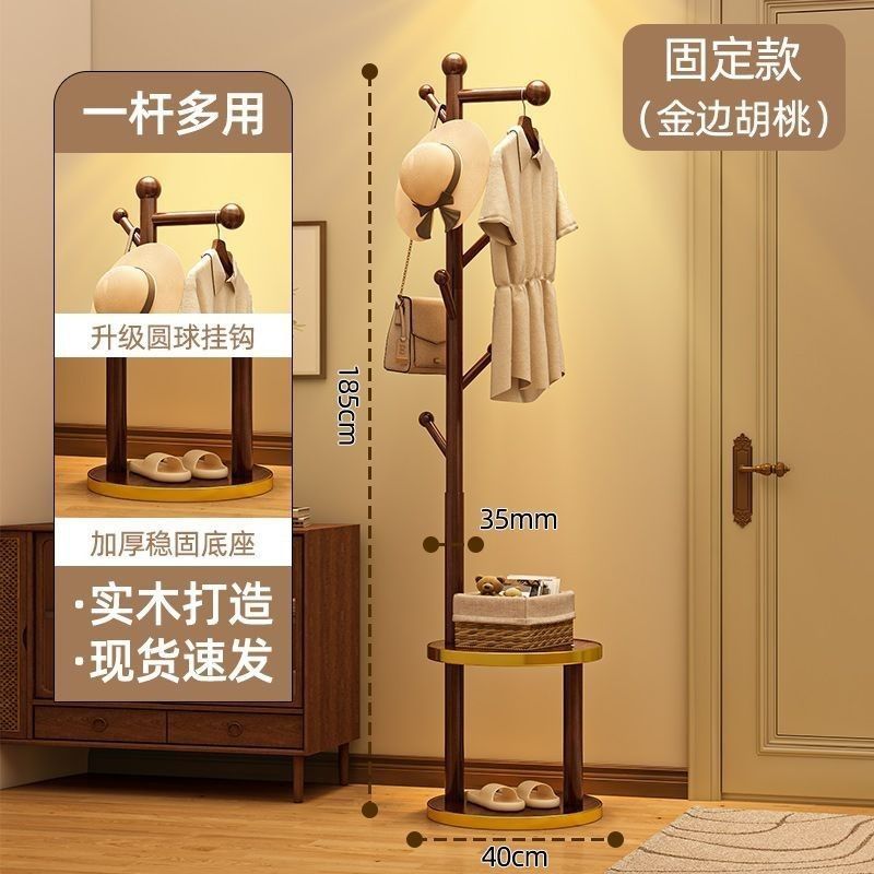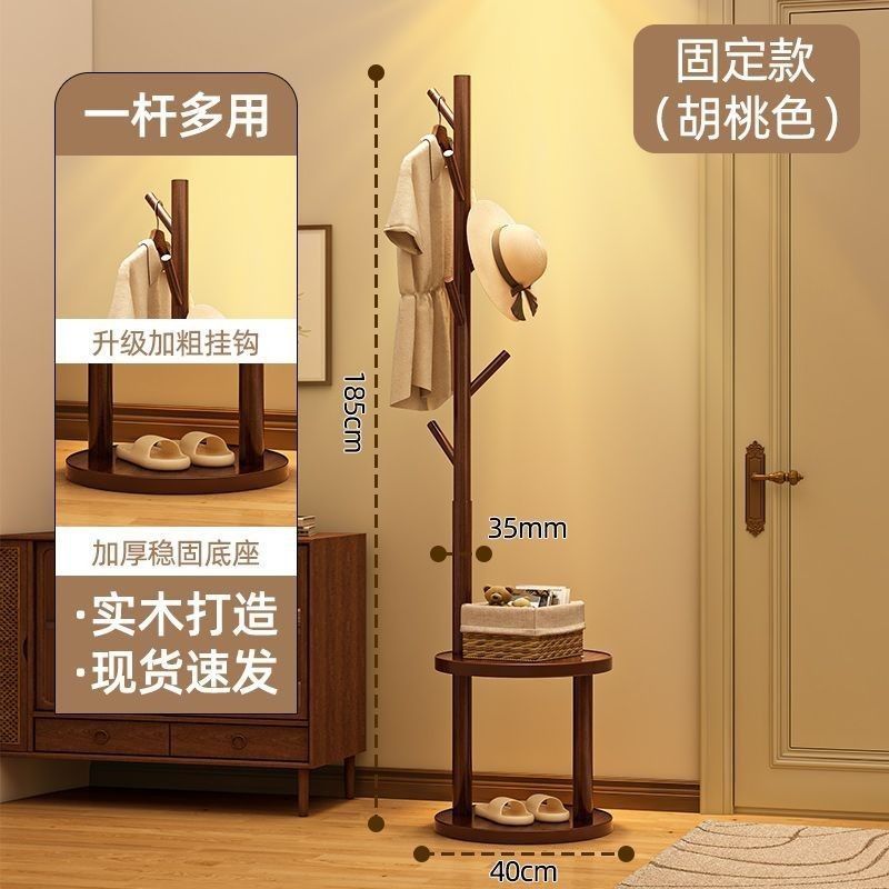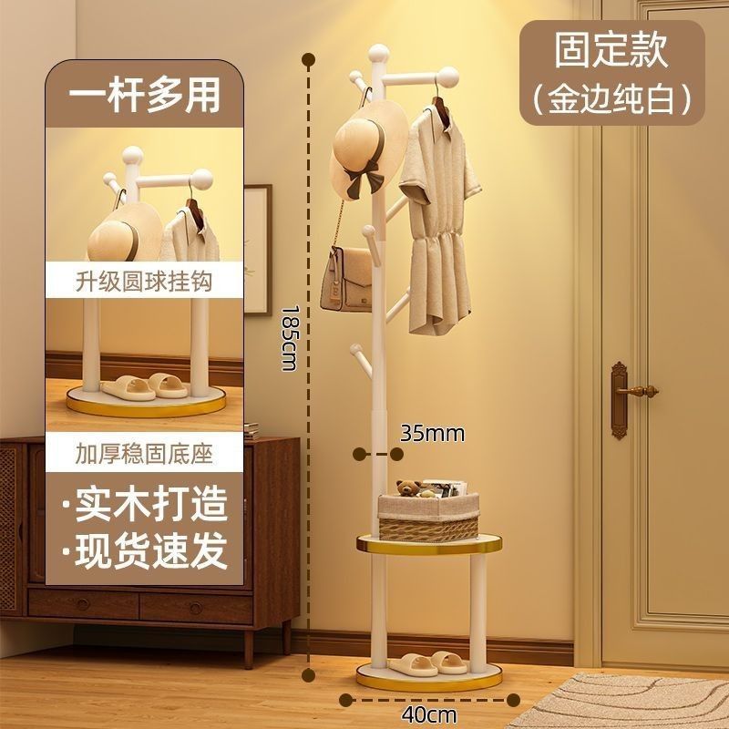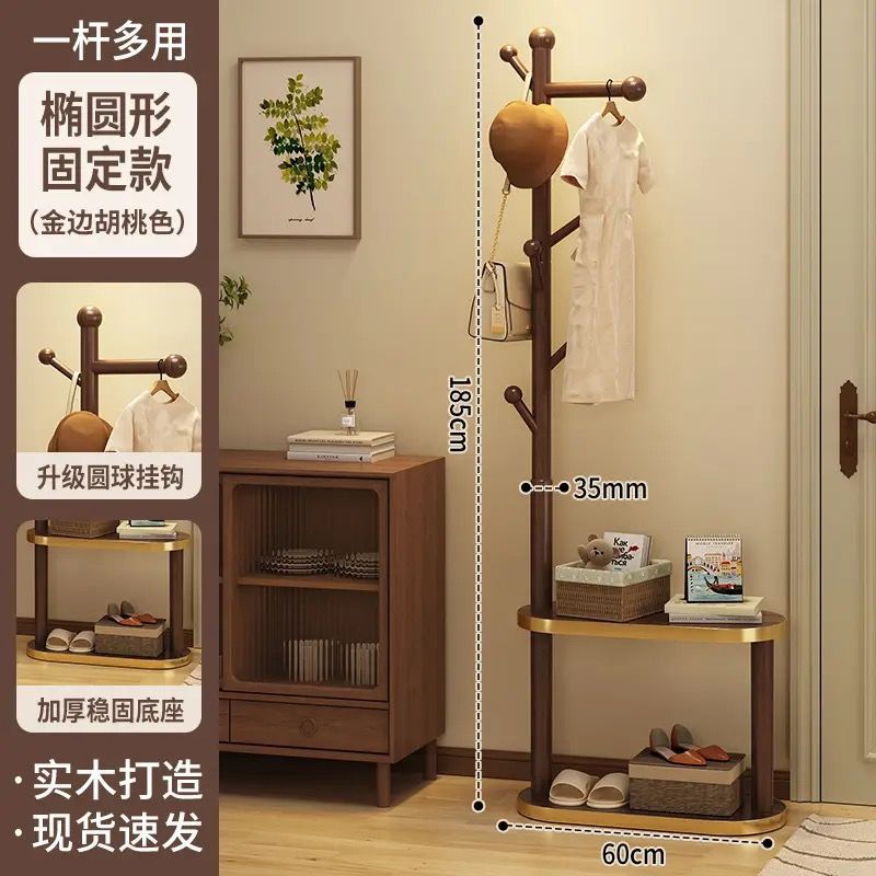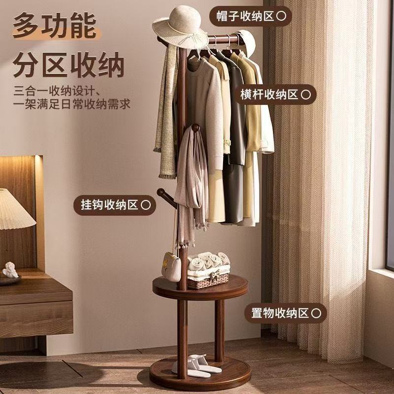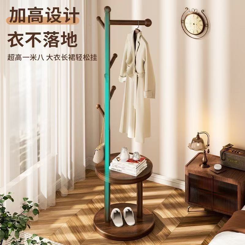 (생방송) 원목 코트 랙 플로어 스탠딩 침대 옆 테이블 옷걸이 일체형 홈 침실 수납 선반 수직 심플