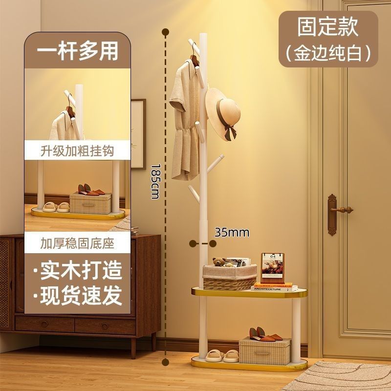 (생방송) 원목 코트 랙 플로어 스탠딩 침대 옆 테이블 옷걸이 일체형 홈 침실 수납 선반 수직 심플스토어 가기