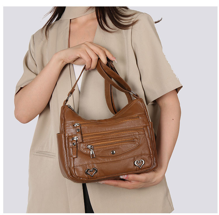 국경을 넘는 부드러운 가죽 엄마 가방, 트렌디한 유럽과 미국의 복고풍 부드러운 가죽 숄더백, 한국식 대용량 스트리트 트렌드 크로스백스토어 가기