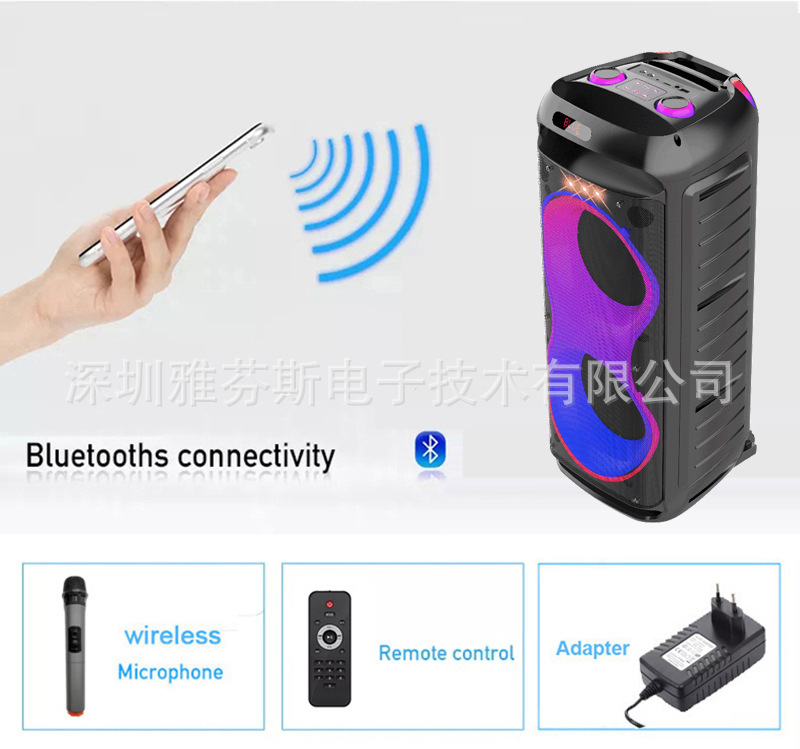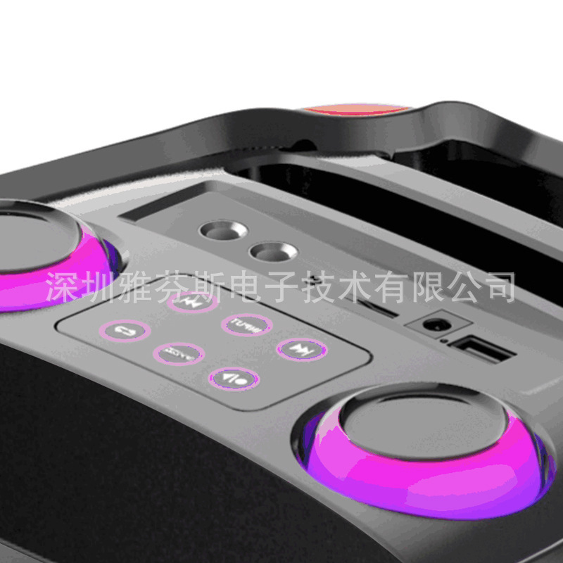 功能:USB,TF卡,蓝牙,AUX,FM,遥控器,TWS,LED显示屏,无线麦克风,RGB灯光
