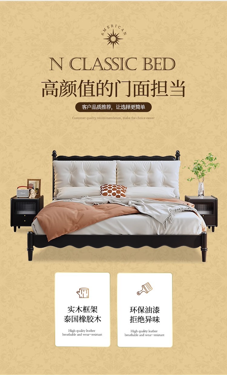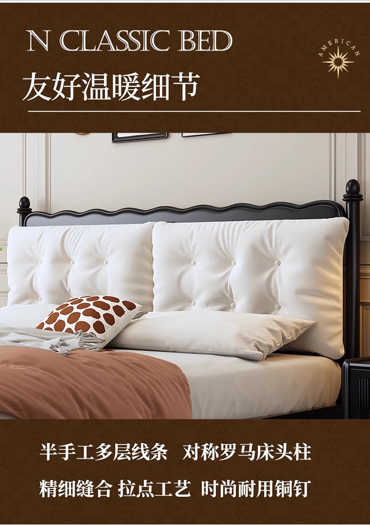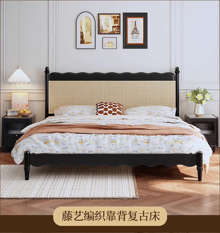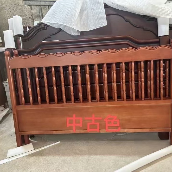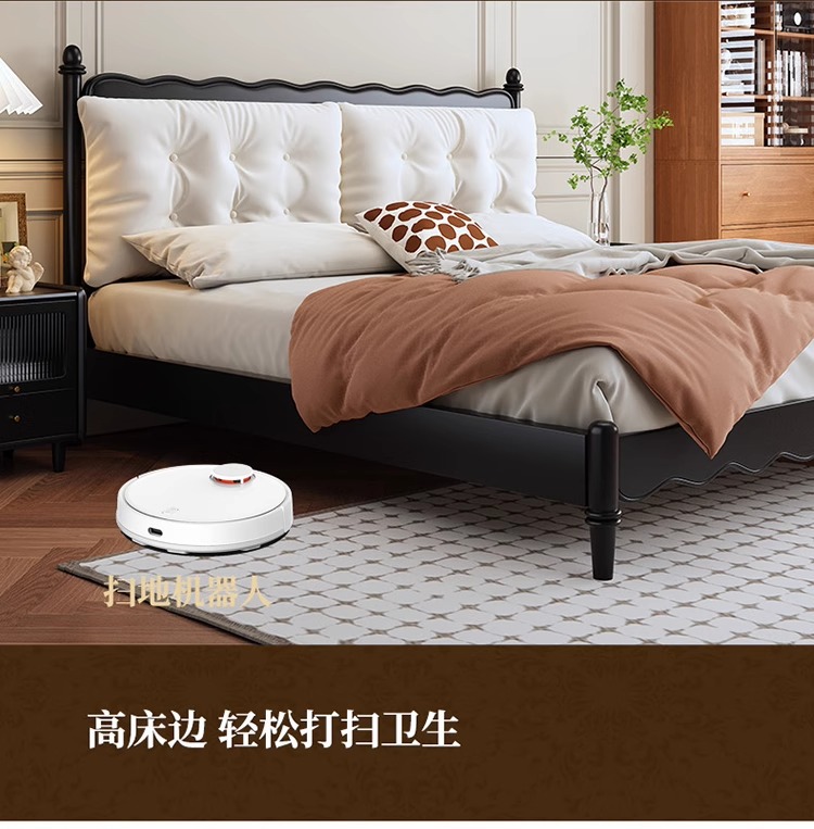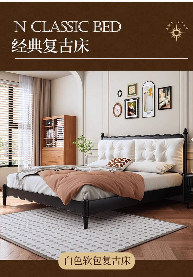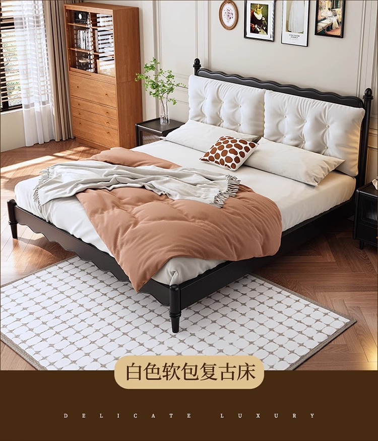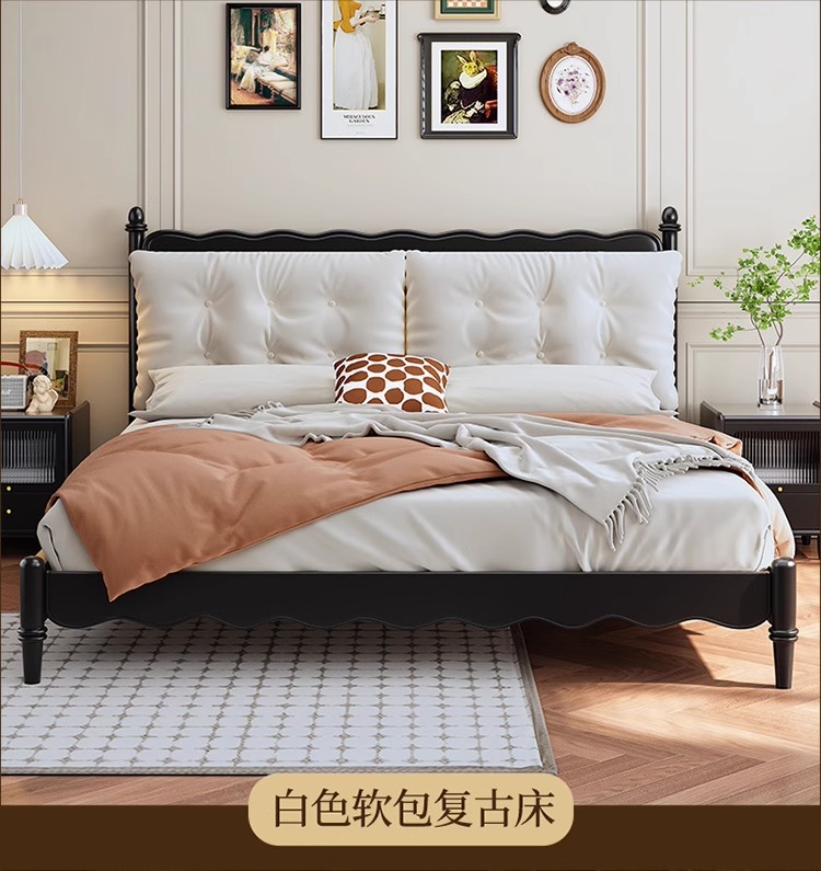 레트로 전체 단단한 나무 침대 1.8m 프랑스 크림 스타일 소프트 커버 더블 침대 간단한 1.5m 마스터 침실 웨딩 침대 가구스토어 가기