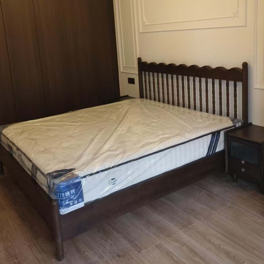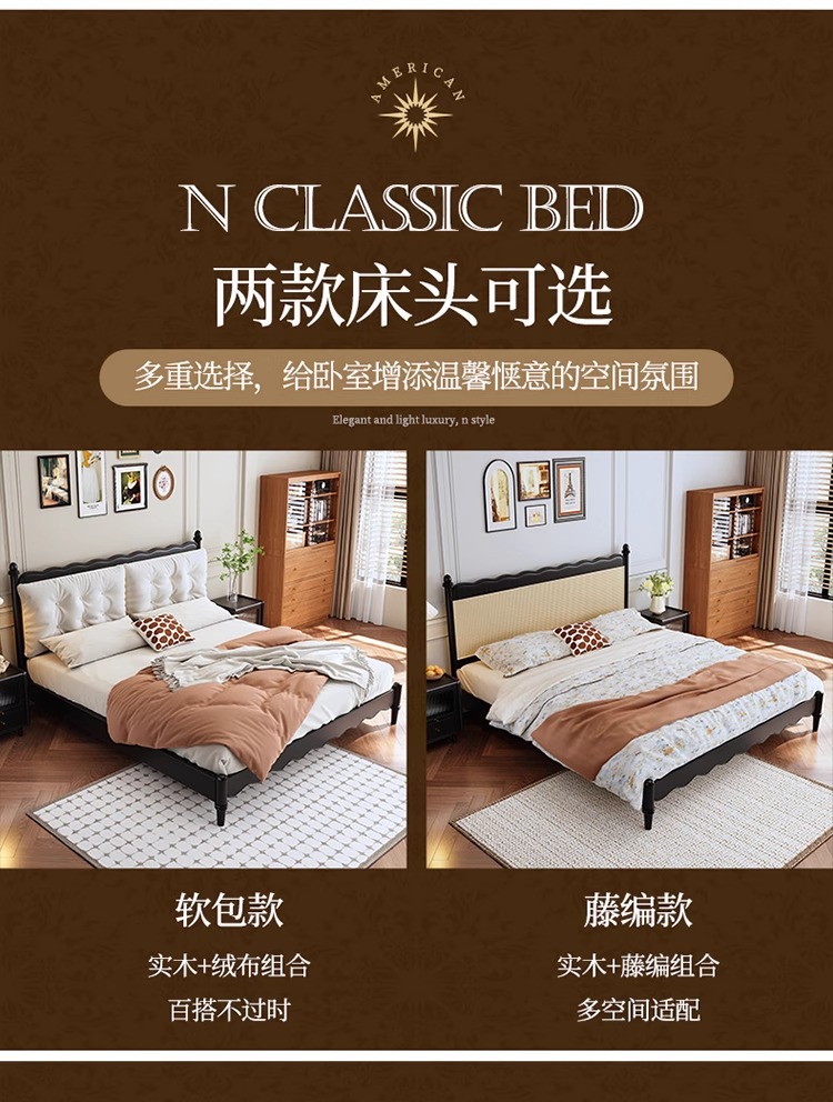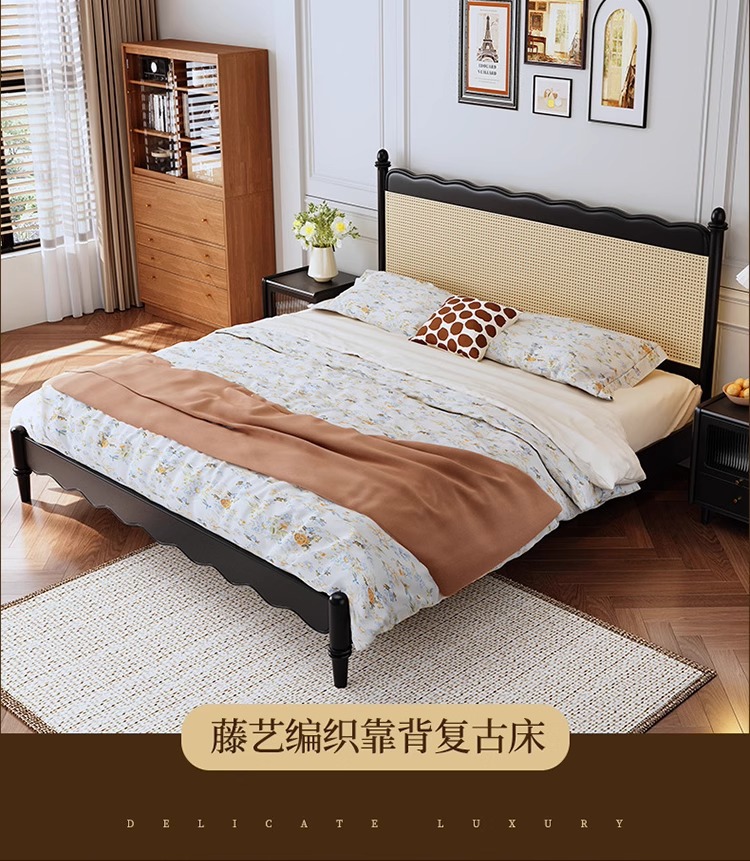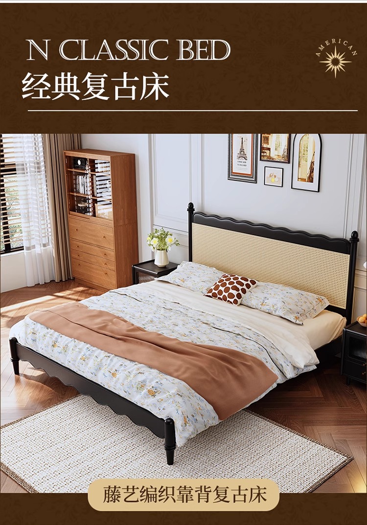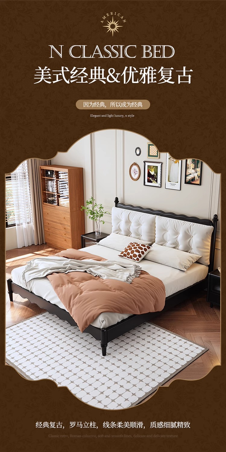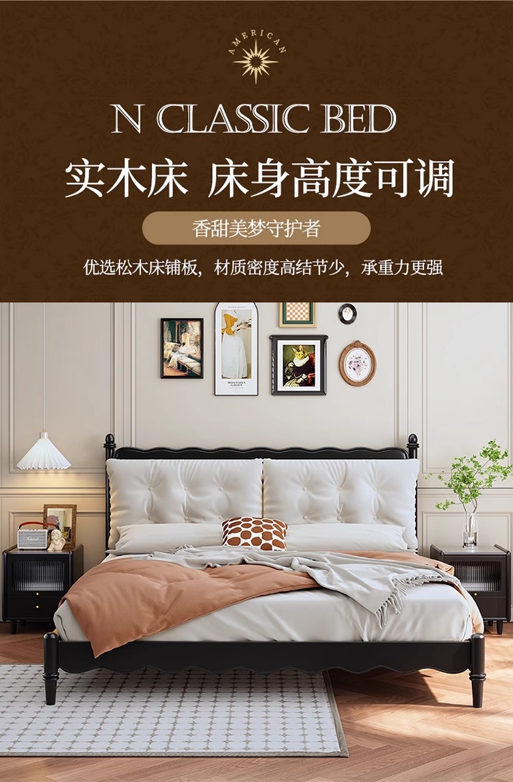 레트로 전체 단단한 나무 침대 1.8m 프랑스 크림 스타일 소프트 커버 더블 침대 간단한 1.5m 마스터 침실 웨딩 침대 가구스토어 가기