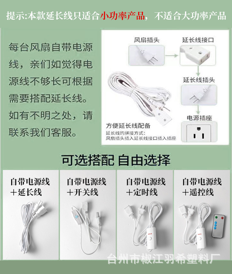 跨境定制:要定制风扇自带插头如【欧规,美规,英规,澳规等】均可联系客服洽谈。