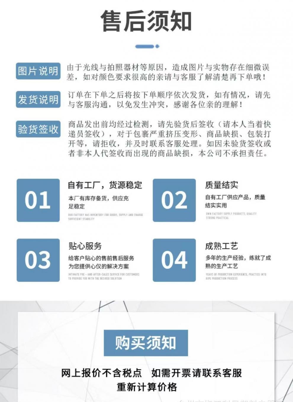 非质量问题退换货顾客需要承担出厂运费以及退货运费。如收货时未验收,出现质量问题承担5元运费。【收货时务必验货后签收】