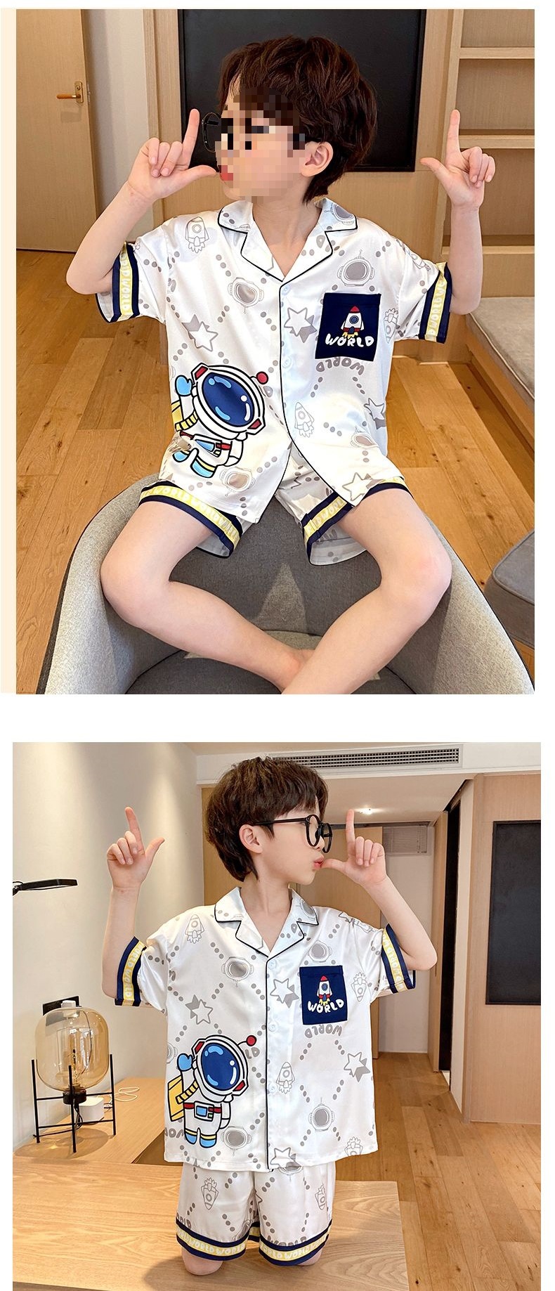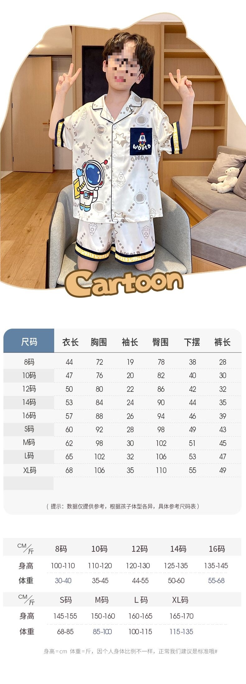 소년 잠옷 여름 얼음 실크 얇은 양복 어린이 소년 만화 큰 어린이 및 청소년 2024 새로운 가정 옷스토어 가기