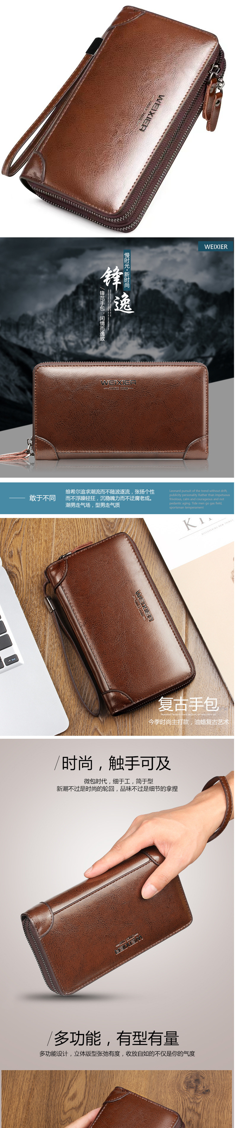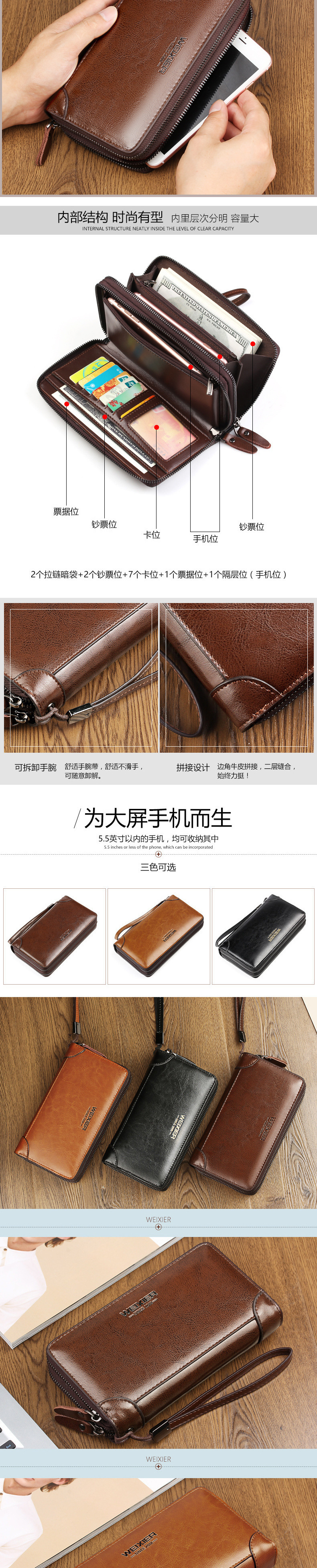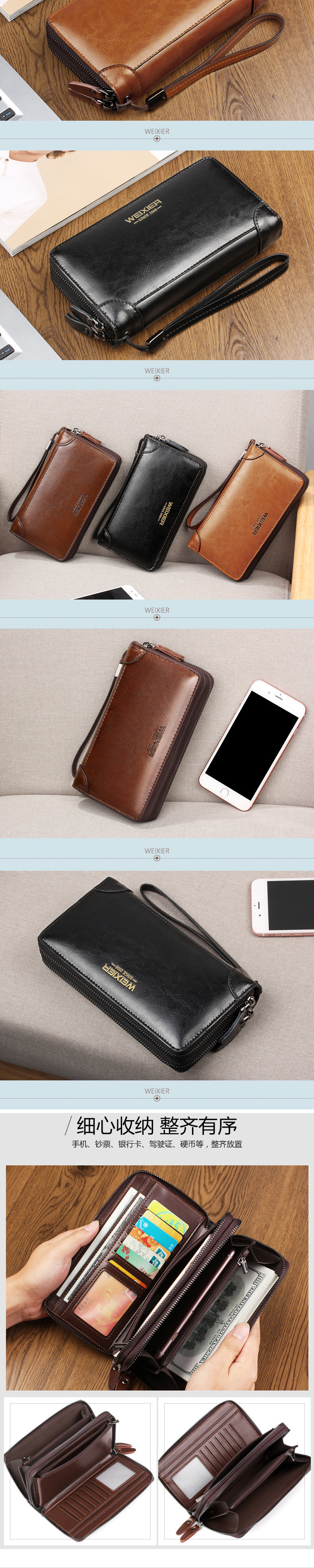 패션 핸드백 남자 대용량 클러치 백 더블 지퍼 캐주얼 비즈니스 롱 지갑 핸드백 휴대 전화 가방