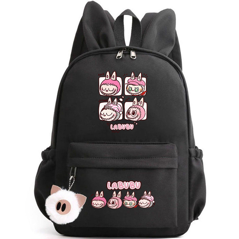 만화 패턴 귀여운 토끼 귀 더블 어깨 배낭 초등학교 가방 패션 캐주얼 작은 학교 가방