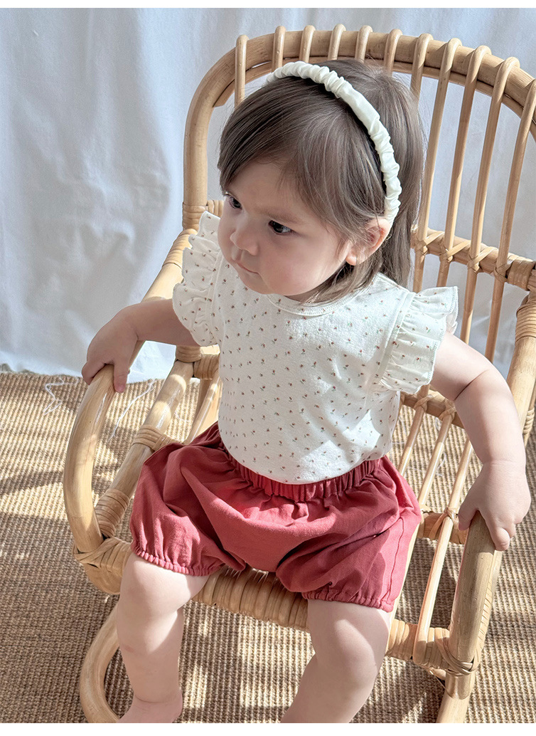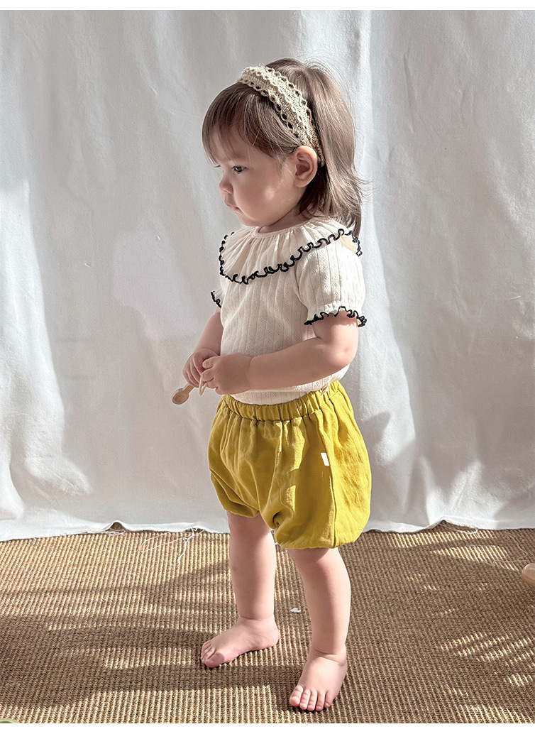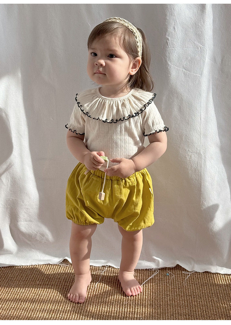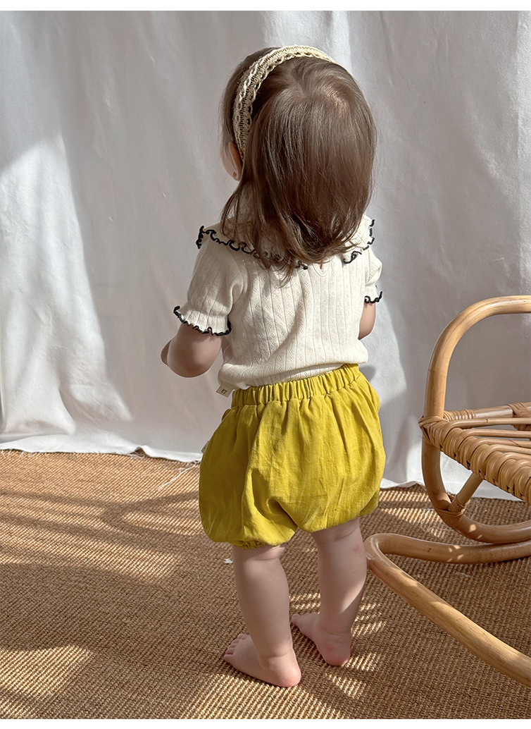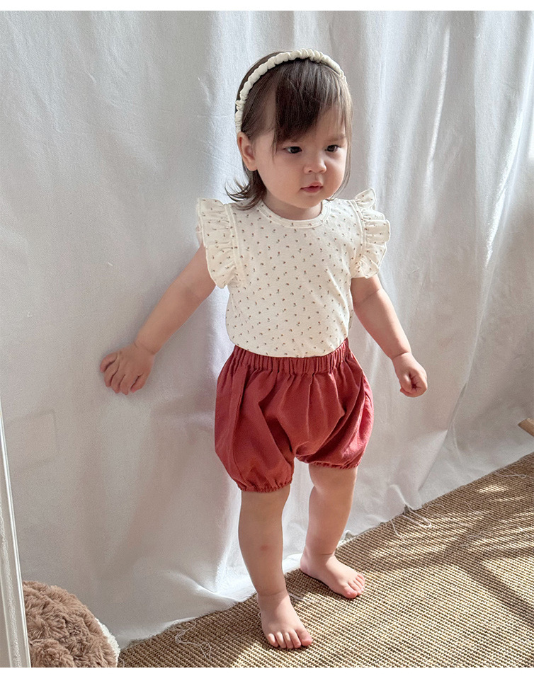 여름 신상 아기바지, 아기 여름반바지, 패셔너블하고 귀여운 영유아 단색 달콤하고 귀여운 꽃봉오리 바지