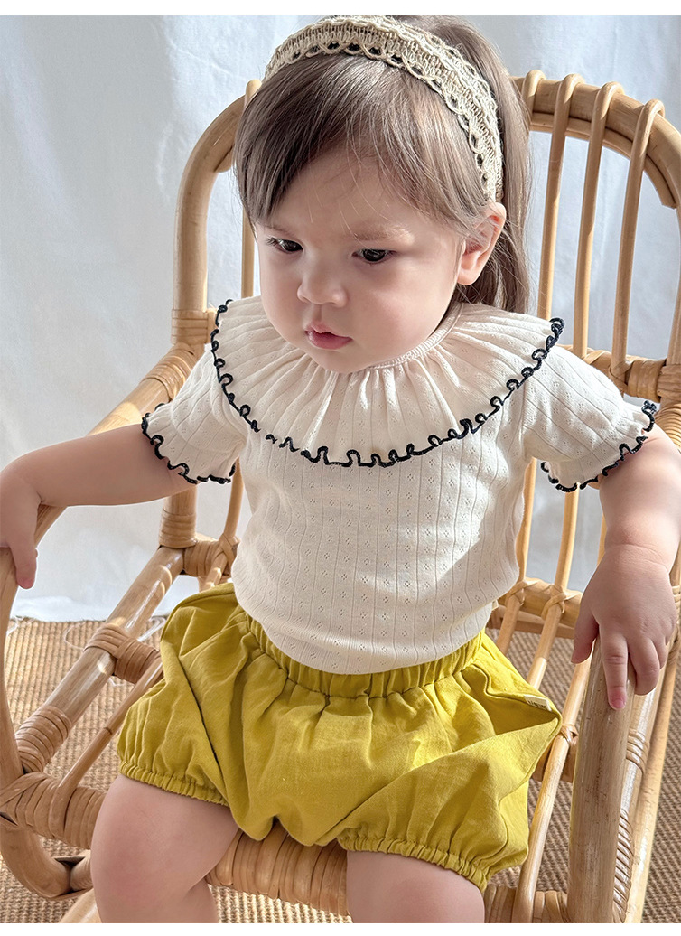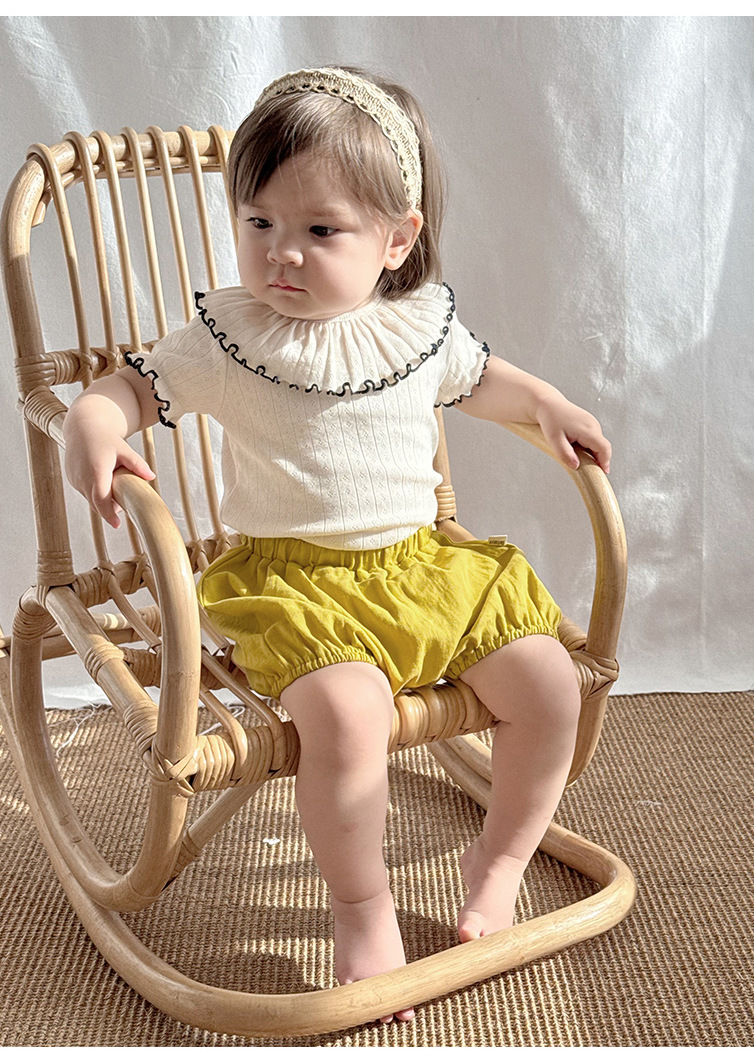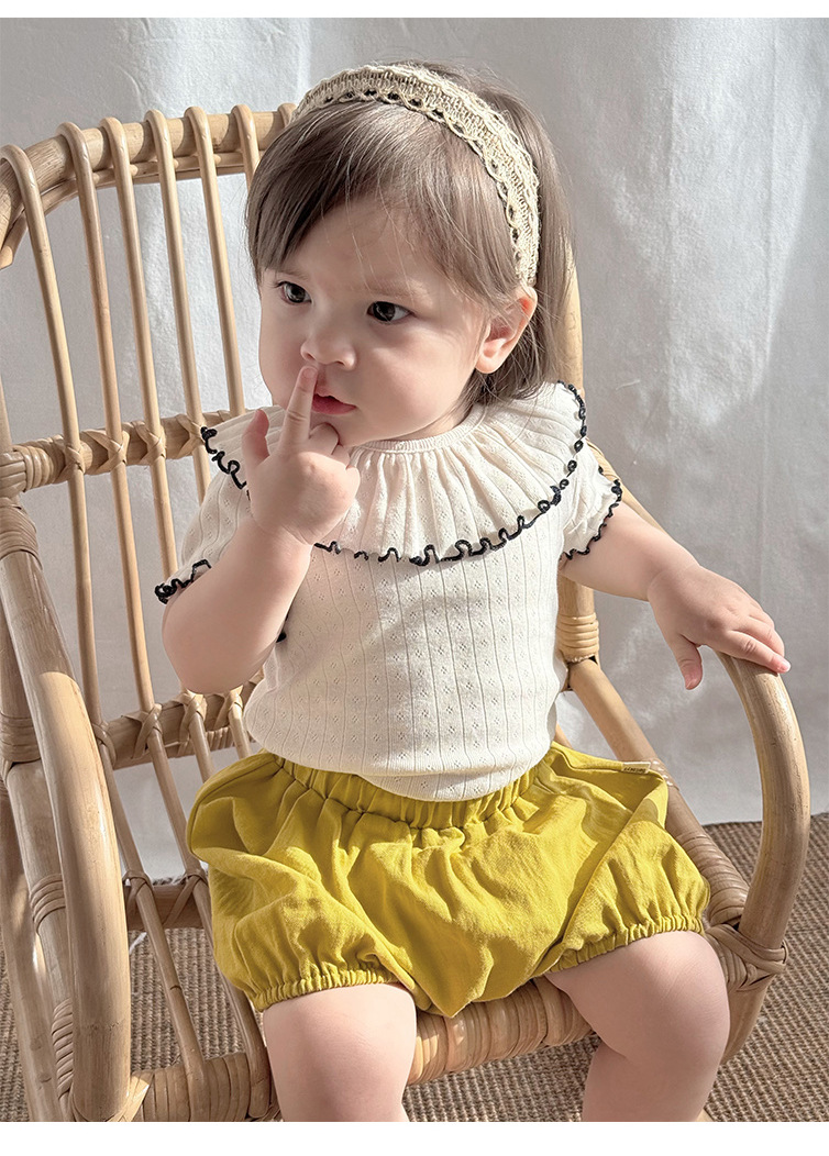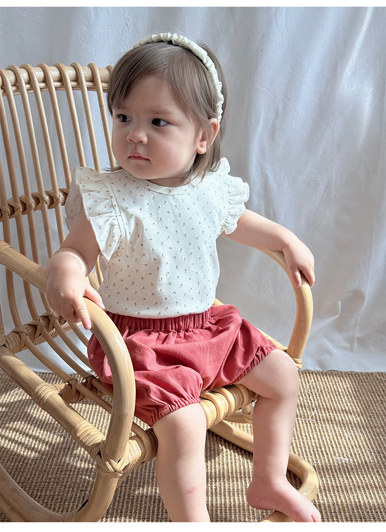 여름 신상 아기바지, 아기 여름반바지, 패셔너블하고 귀여운 영유아 단색 달콤하고 귀여운 꽃봉오리 바지