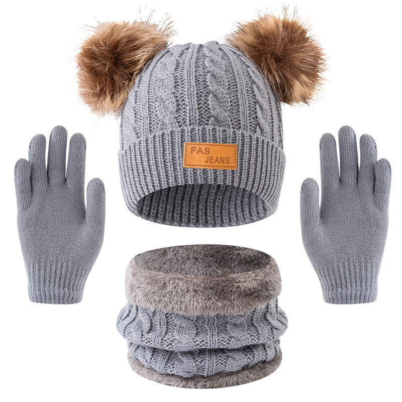 아마존 국경 간 어린이 새 모자 스카프 세트 아기 플러스 벨벳 따뜻한 더블 헤어 볼 니트 모직 모자 추위스토어 가기