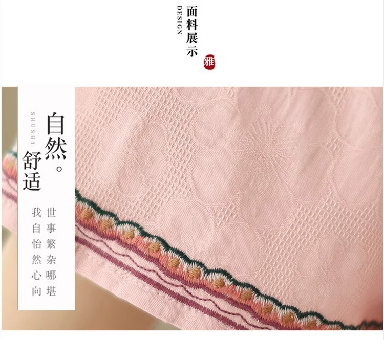 2025 여름 새로운 복고풍 민족 스타일 문학 자카드 느슨한 캐주얼 대각선 가슴 버튼 여성을위한 반팔 셔츠 탑스토어 가기