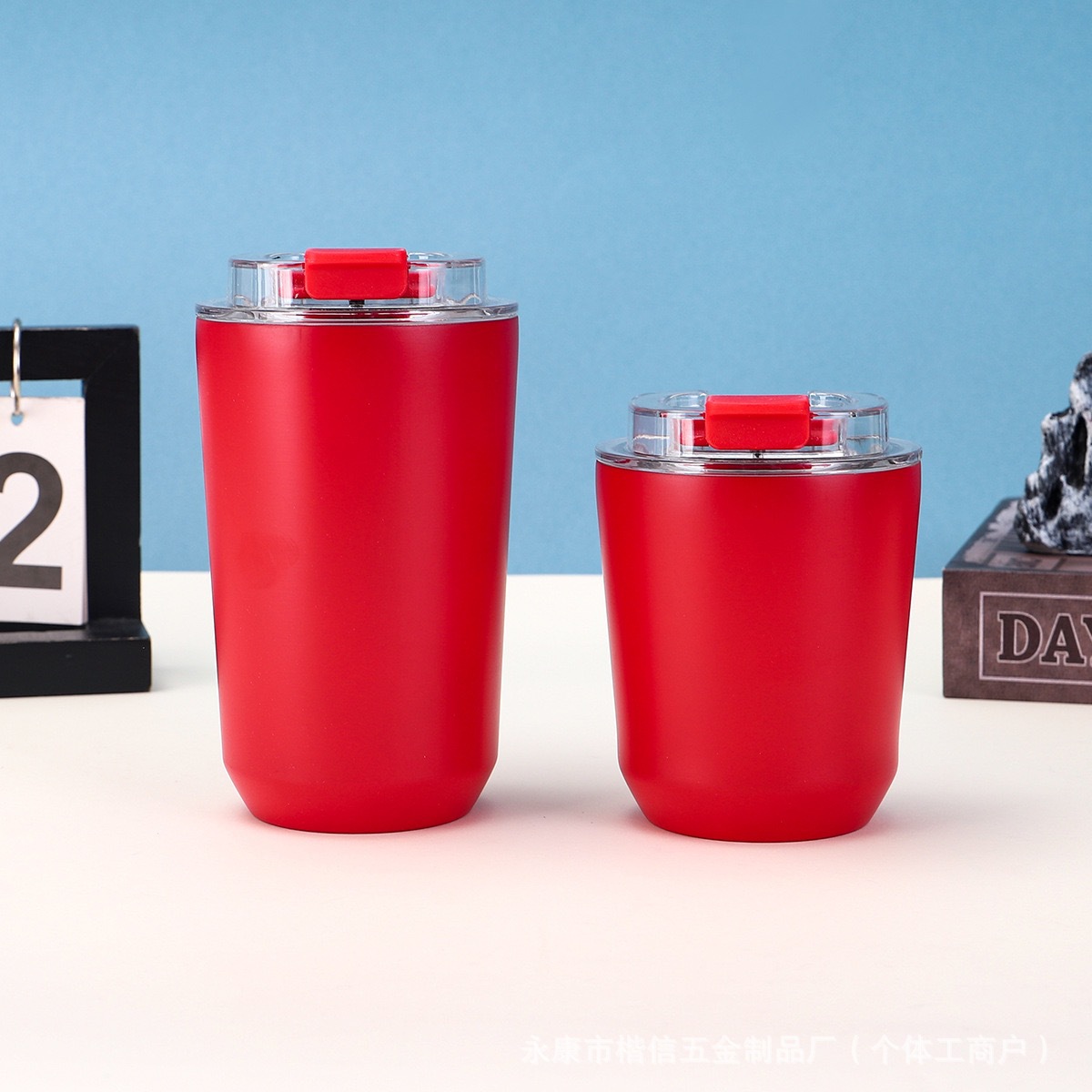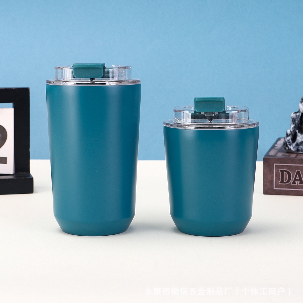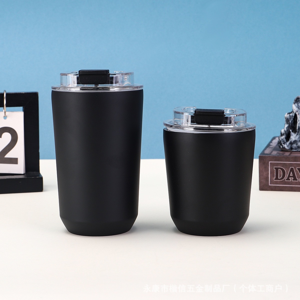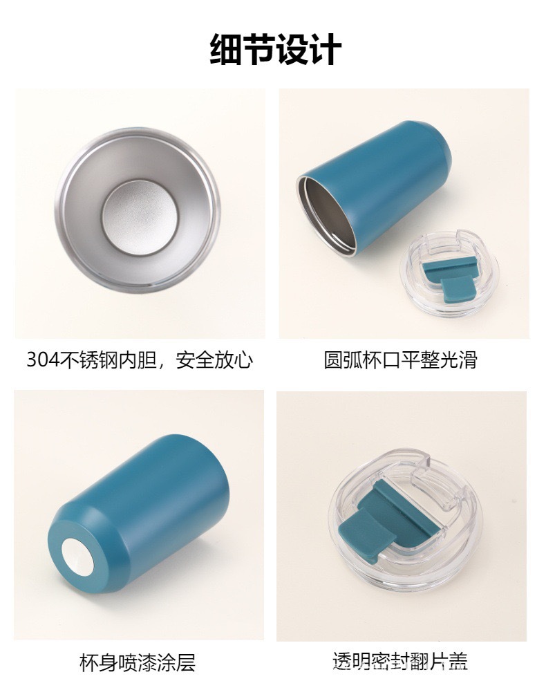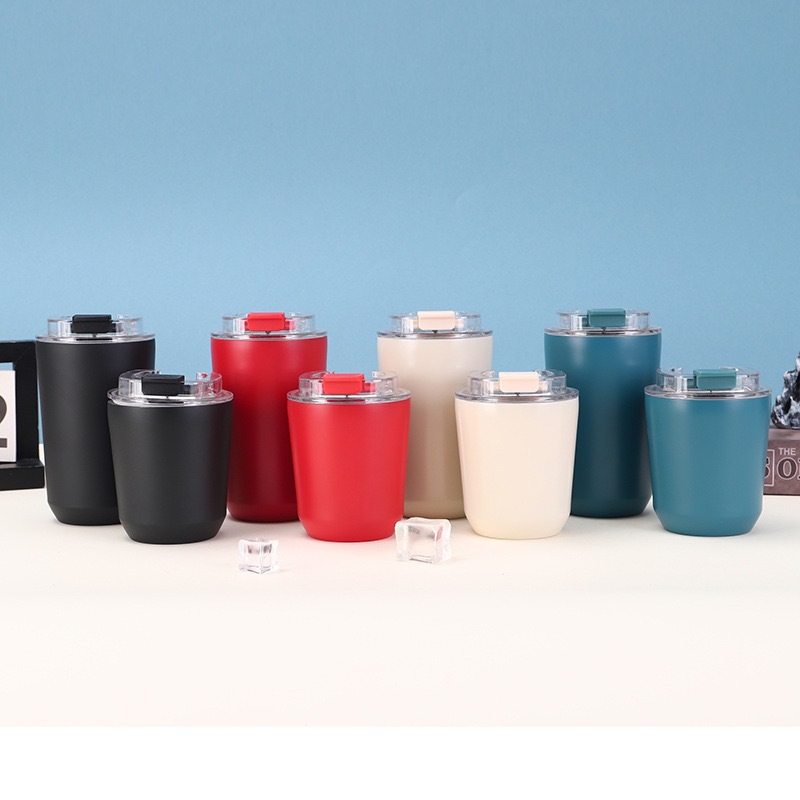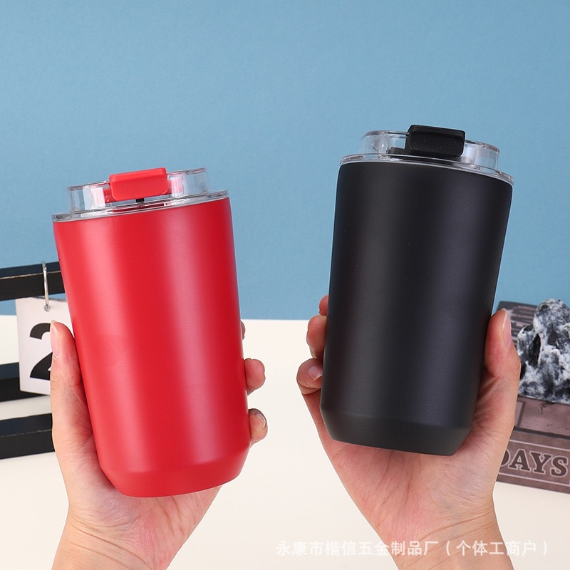 새로운 304 스테인레스 스틸 보온병 컵, 뚜껑이 있는 원클릭 오픈 커피 컵, 간단한 대용량 머그잔 배치