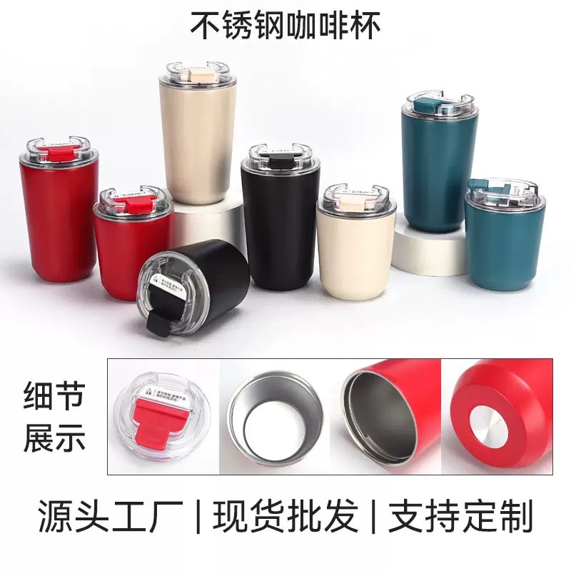 새로운 304 스테인레스 스틸 보온병 컵, 뚜껑이 있는 원클릭 오픈 커피 컵, 간단한 대용량 머그잔 배치스토어 가기