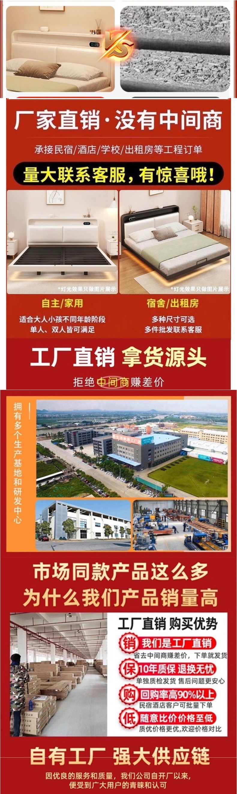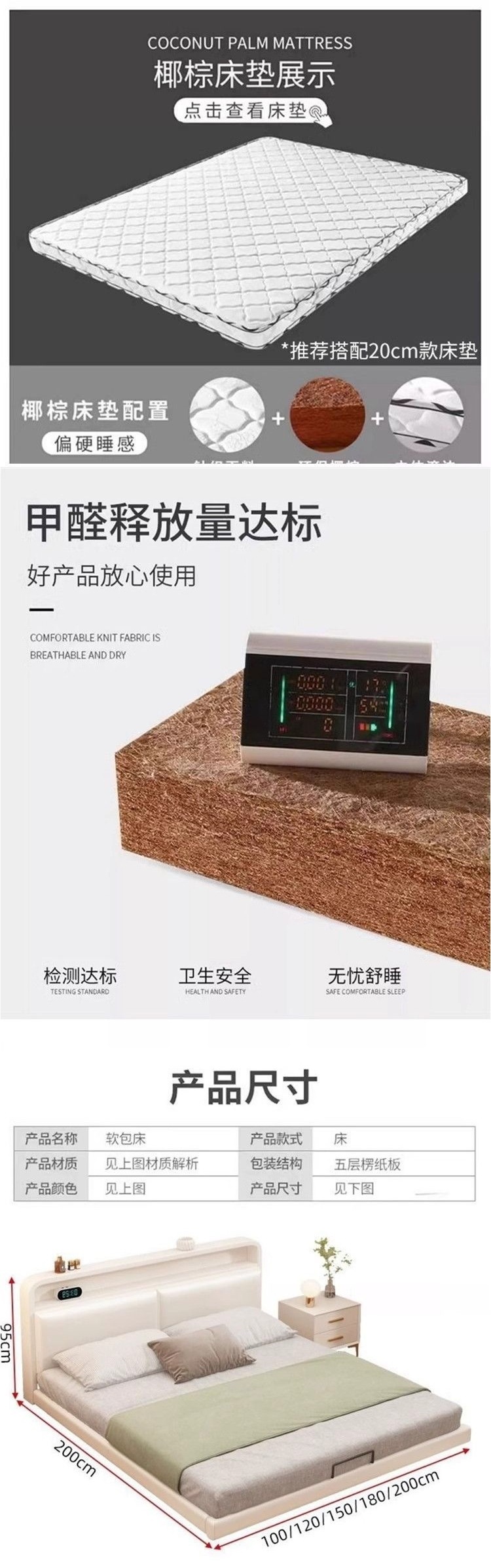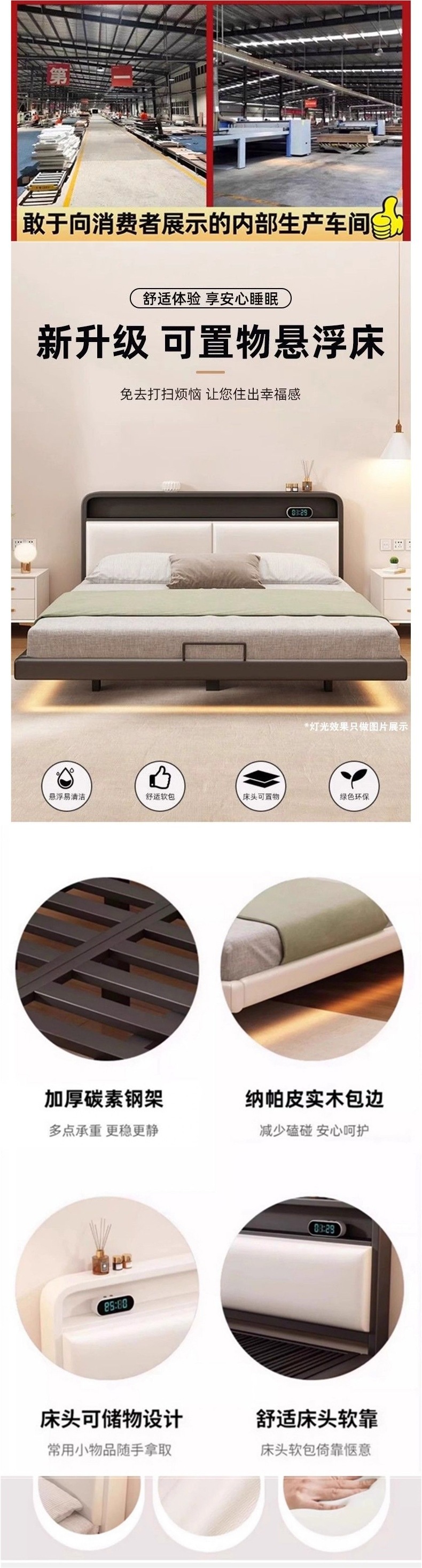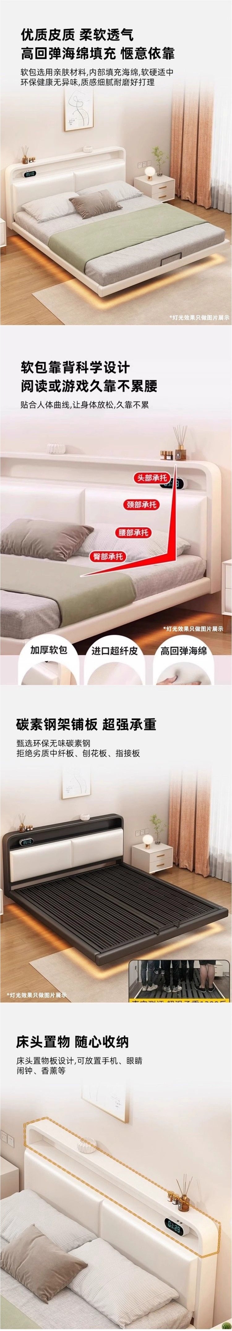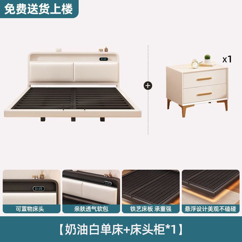 • ++업그레이드된 크림 화이트 촘촘한 침구 모델(라이트 스트립 및 미끄럼 방지 지지대 포함)(침대 옆에 물건 보관 가능) +-+