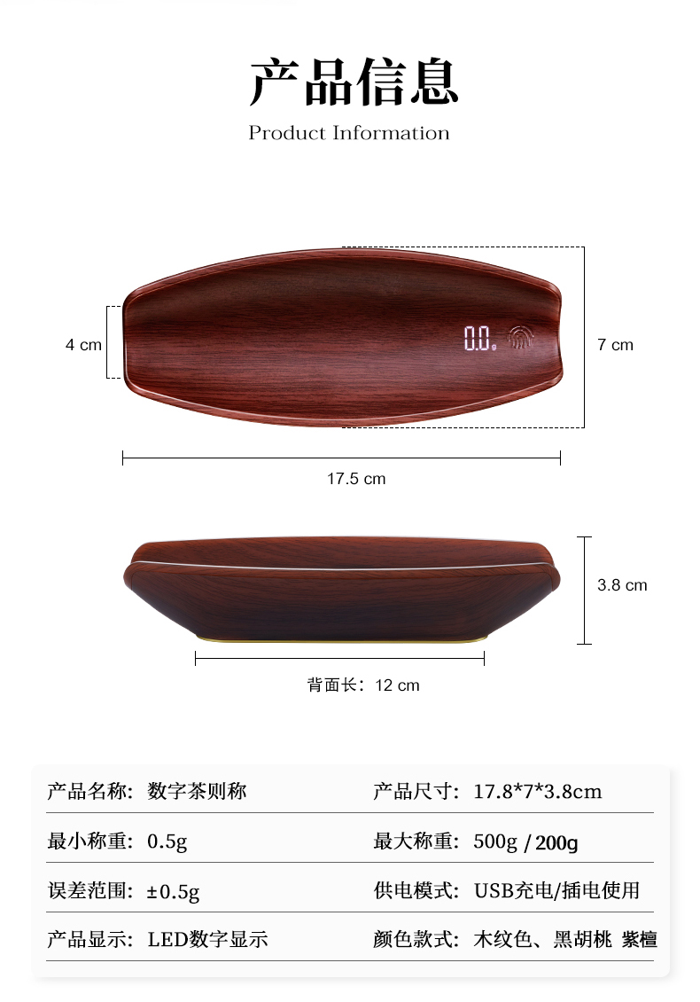새로운 로즈우드 원목 차 전자 저울 차 무게 가정용 소형 그램 차 다도 계량기 차 세트