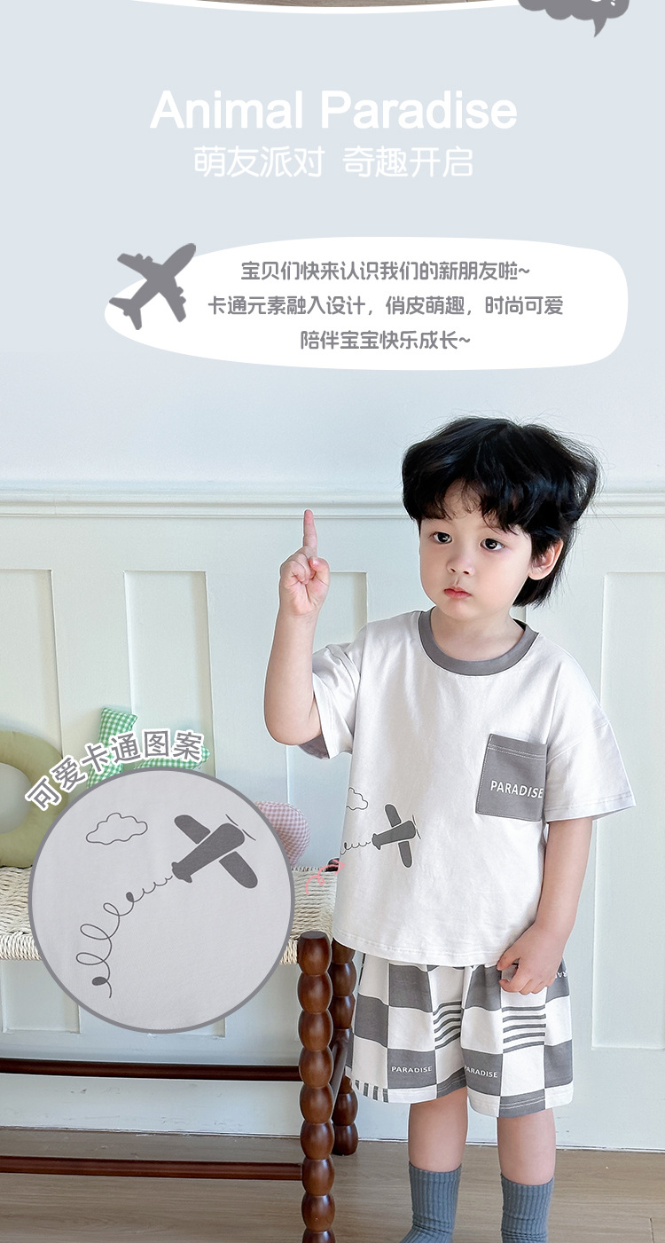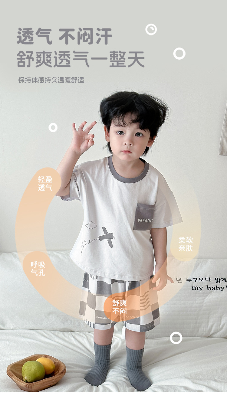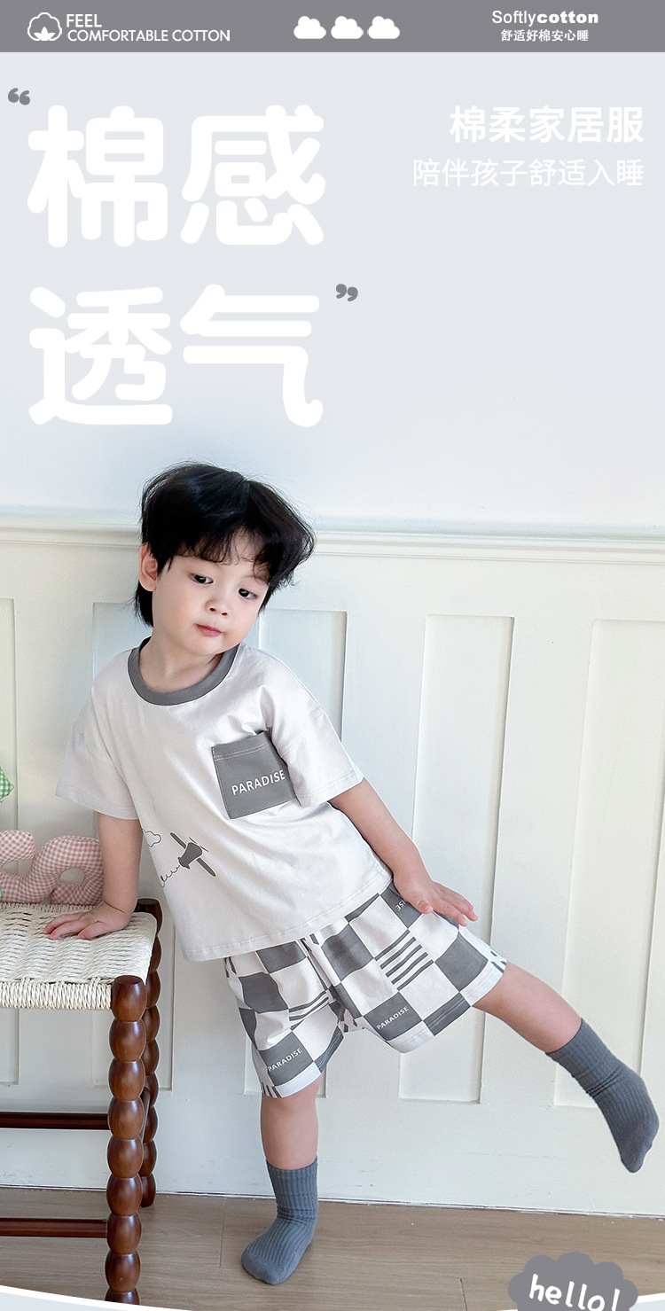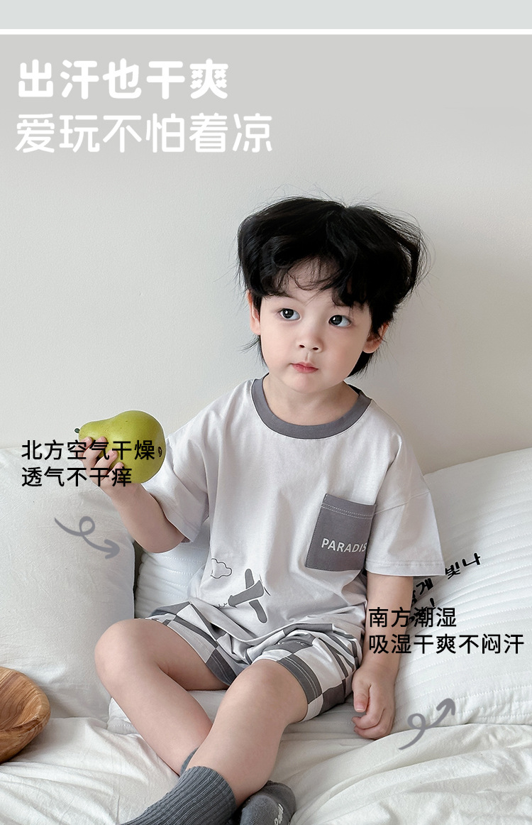 아동 잠옷 여름 리오셀 면 A급 소형 및 중형 아동용 반팔 반바지 정장 얇은 소년 소녀 가정복스토어 가기