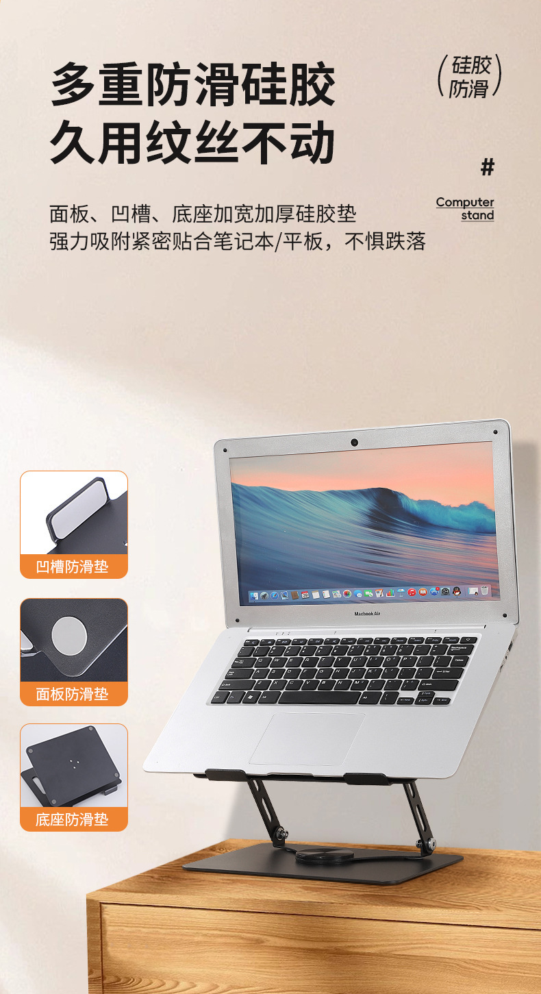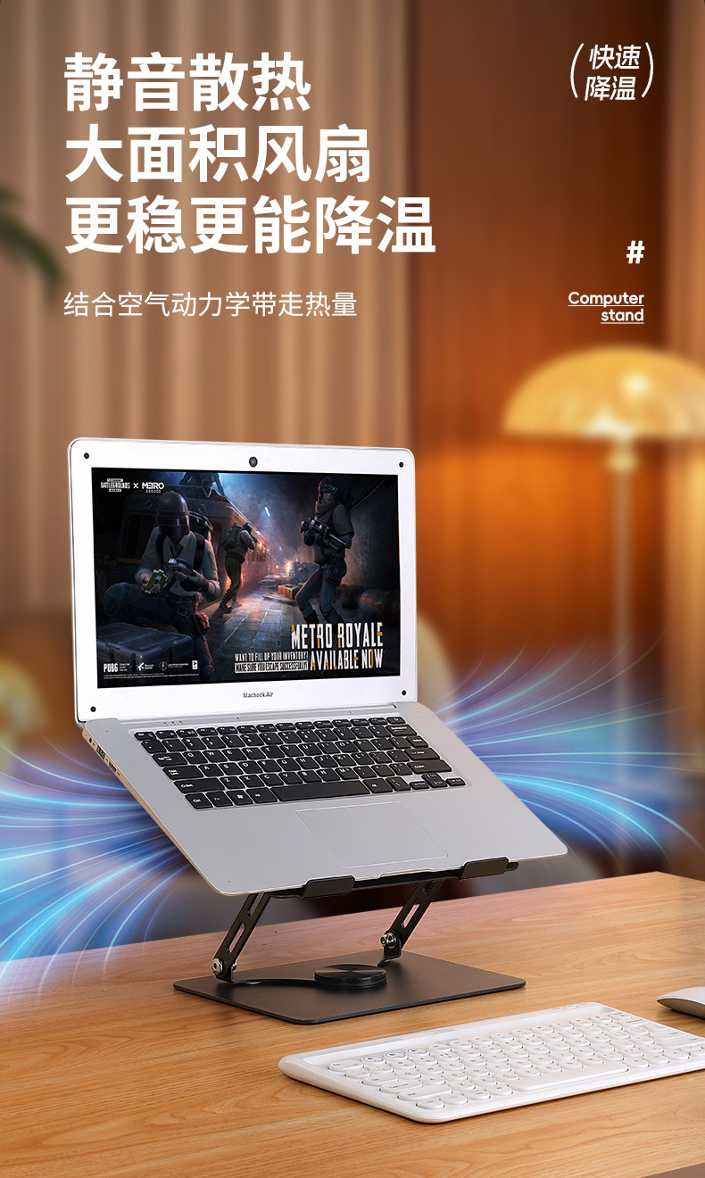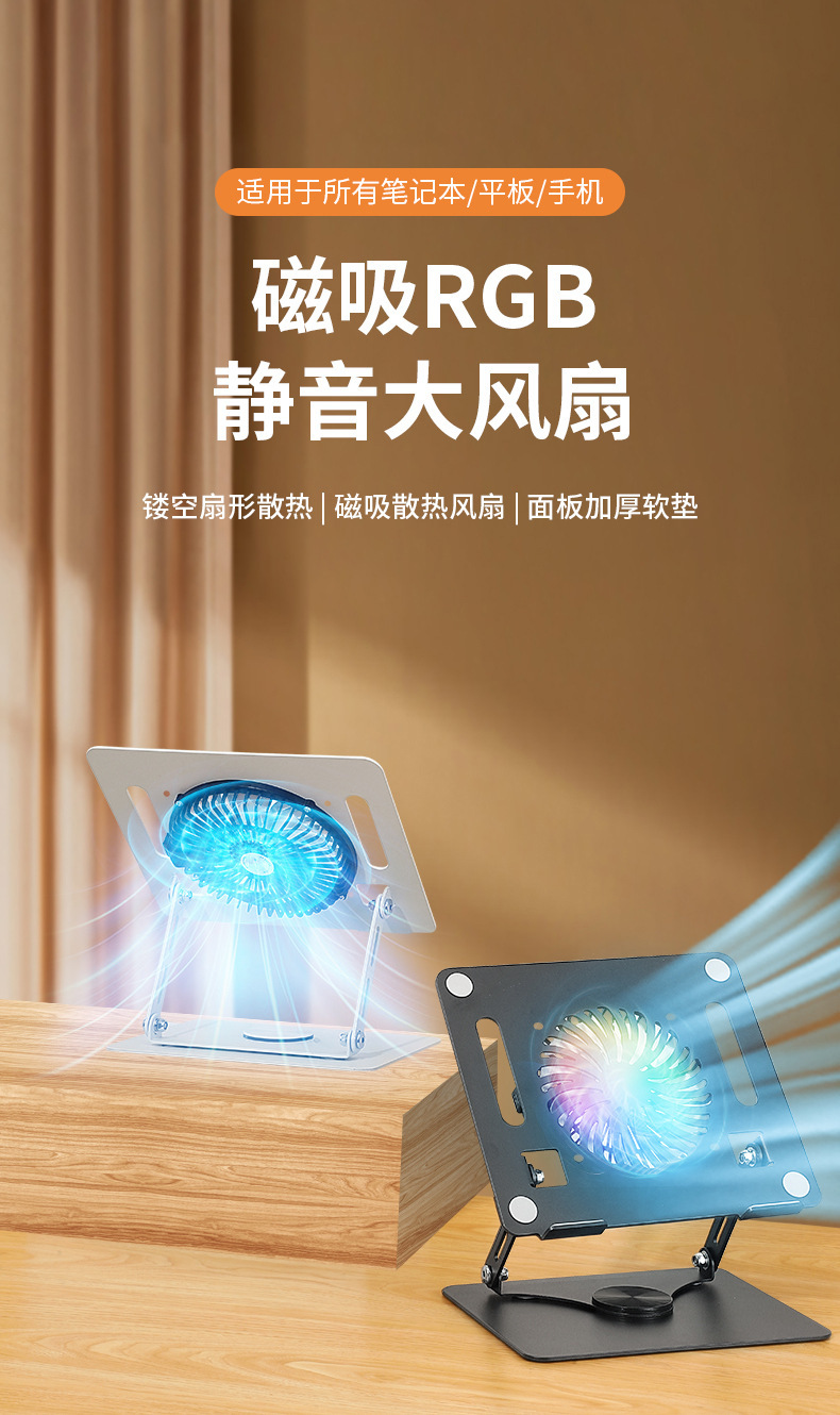 RGB 탈착식 팬 노트북 스탠드, 높이 조절 및 냉각 기능, 탄소강 소재, 회전식