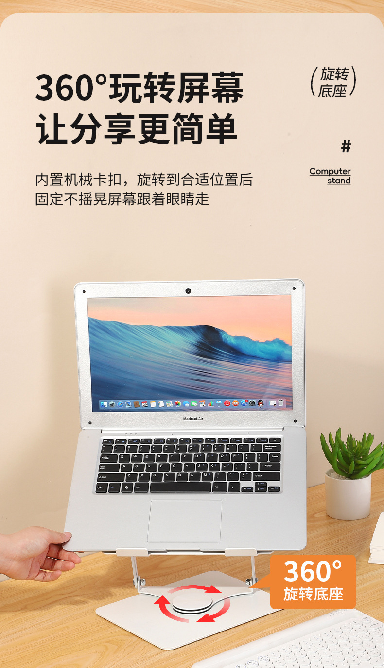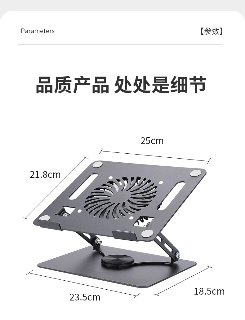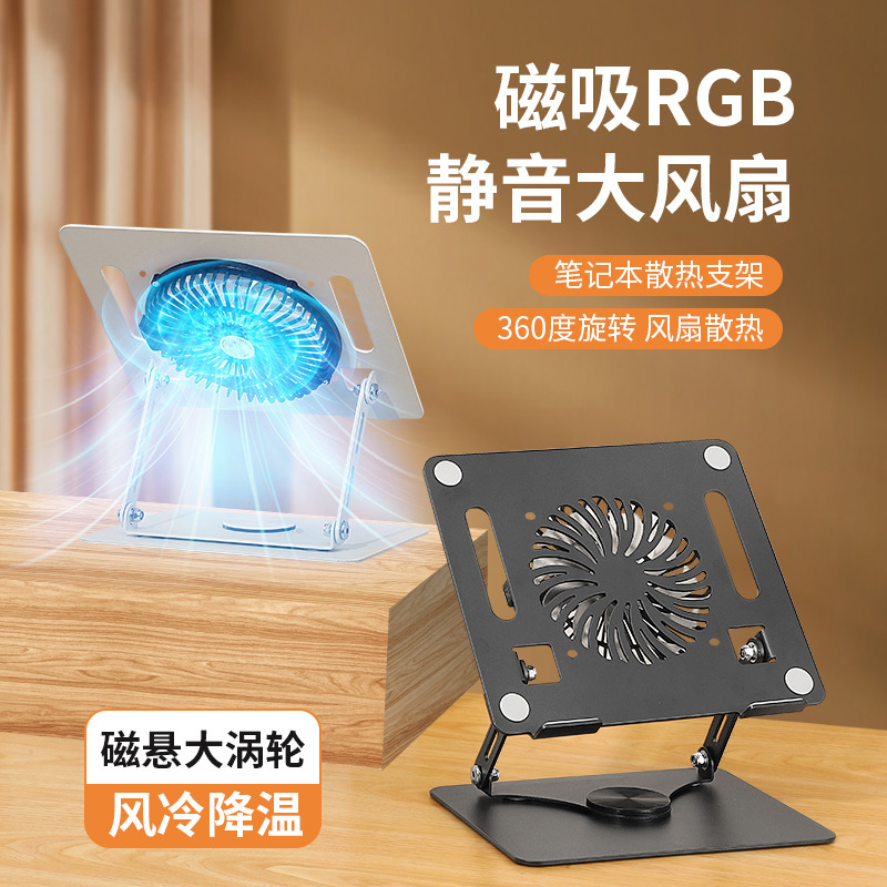 RGB 탈착식 팬 노트북 스탠드, 높이 조절 및 냉각 기능, 탄소강 소재, 회전식스토어 가기