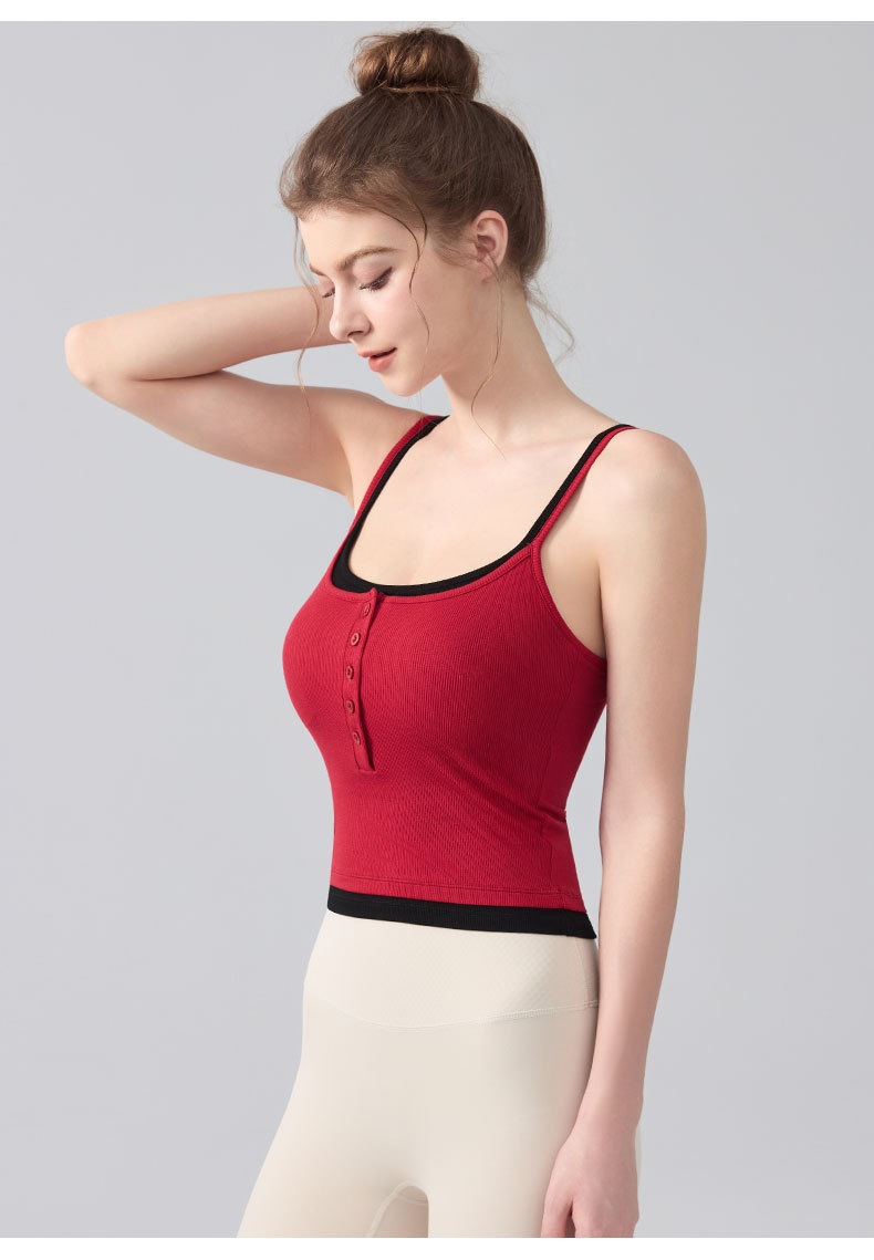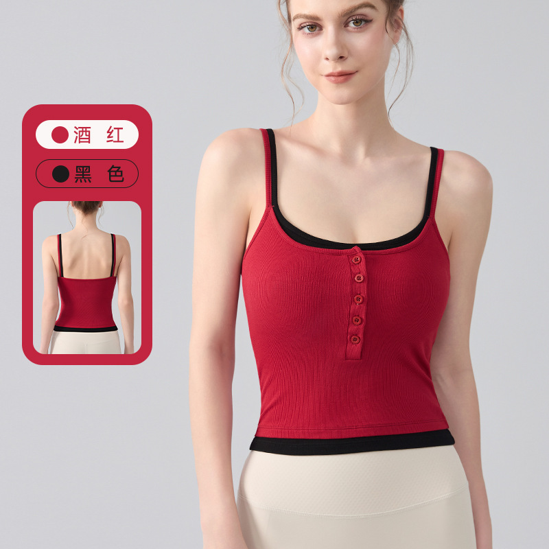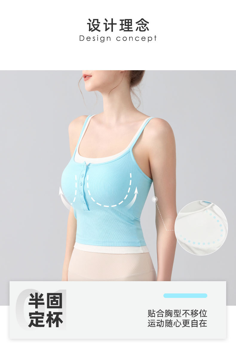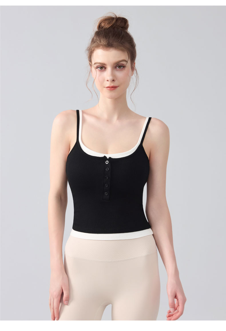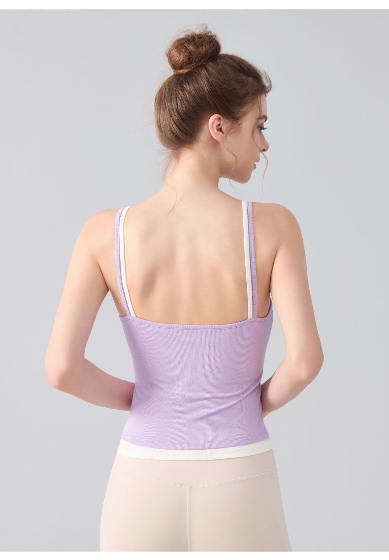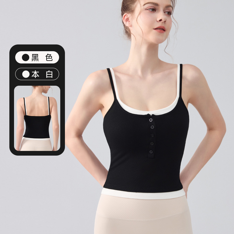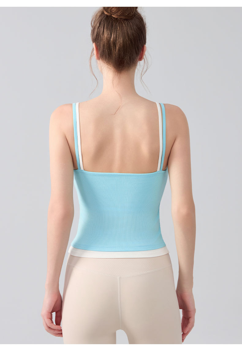 가슴 패드가 있는 여성용 페이크 투피스 요가탑, 원피스 컬러 블록 바닥 캐미솔, 캐주얼 피트니스웨어