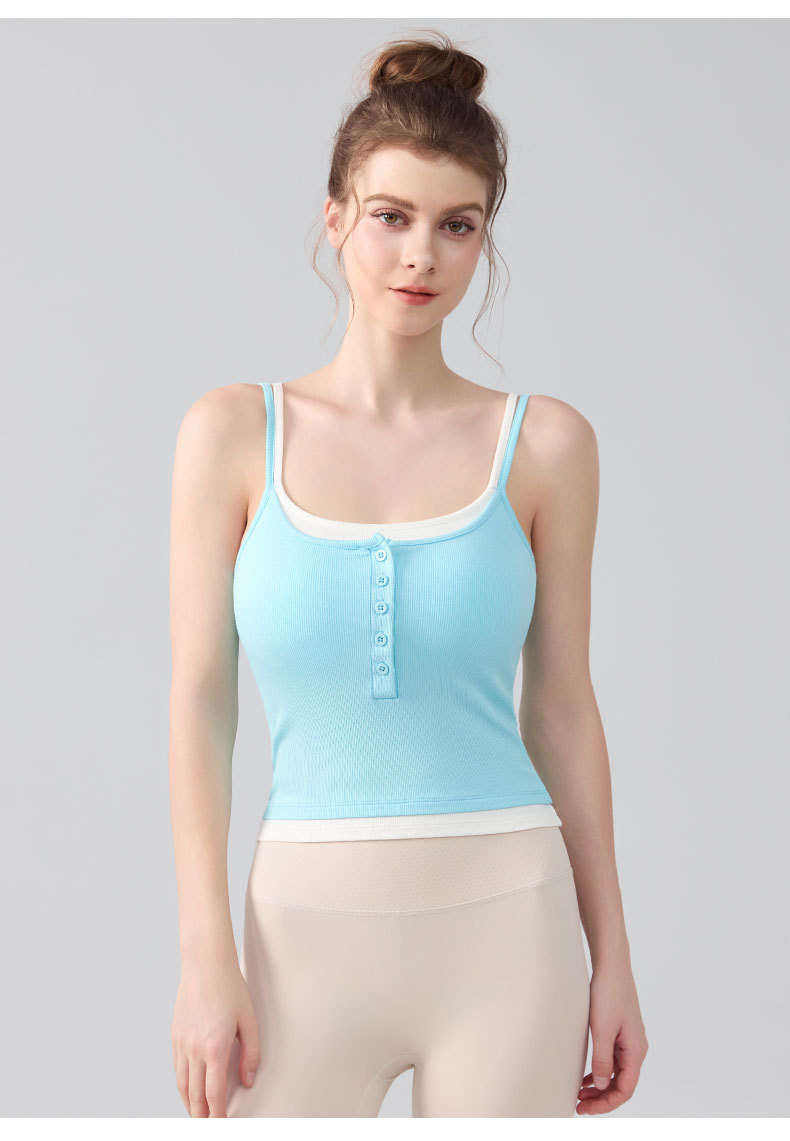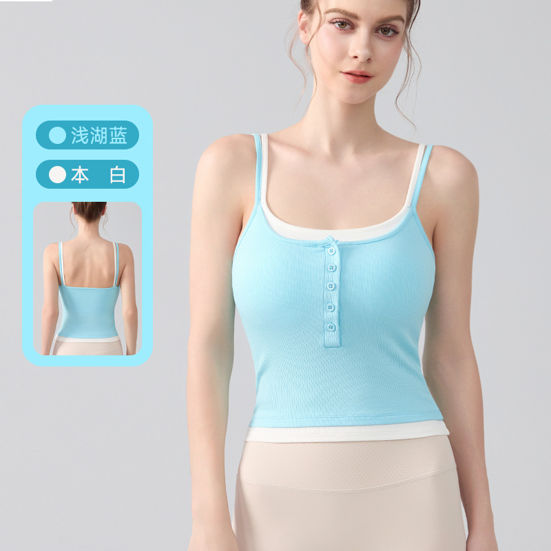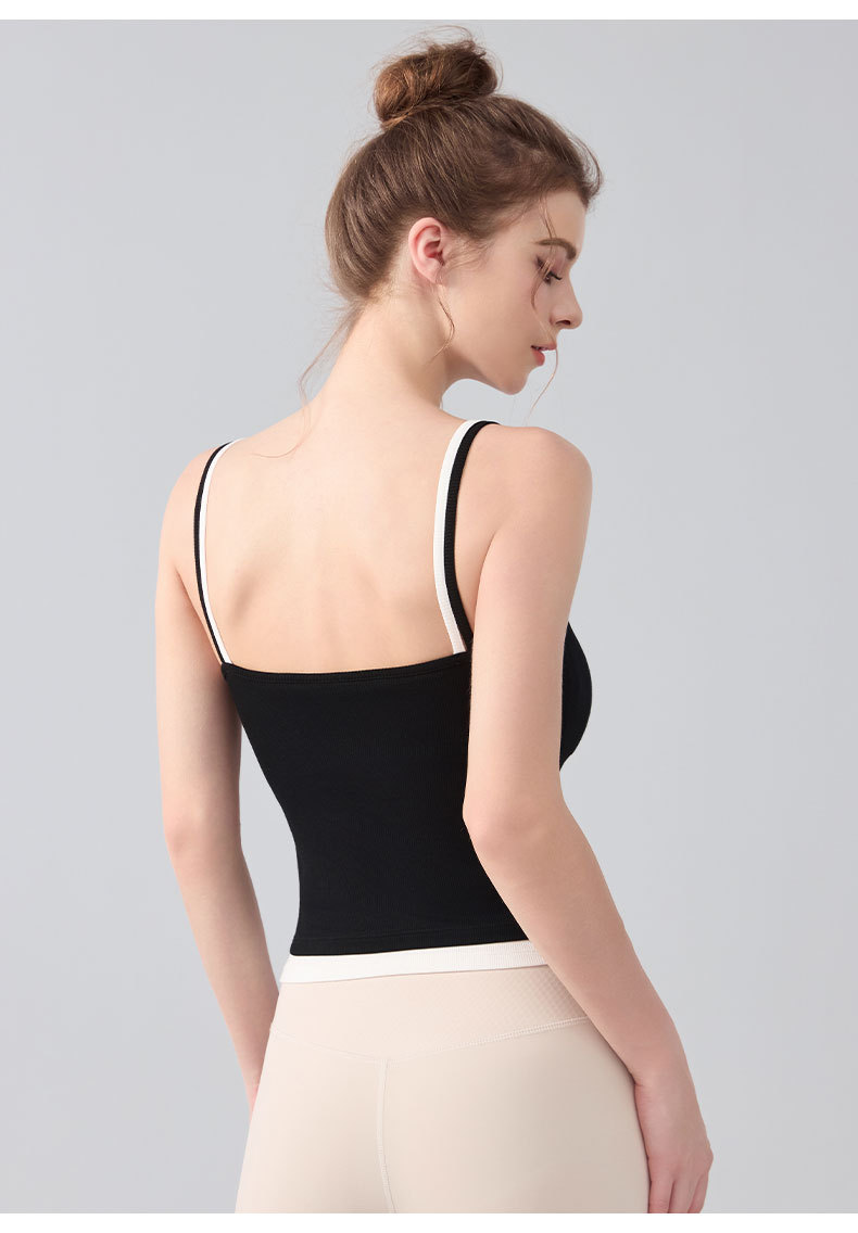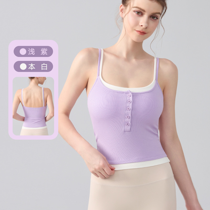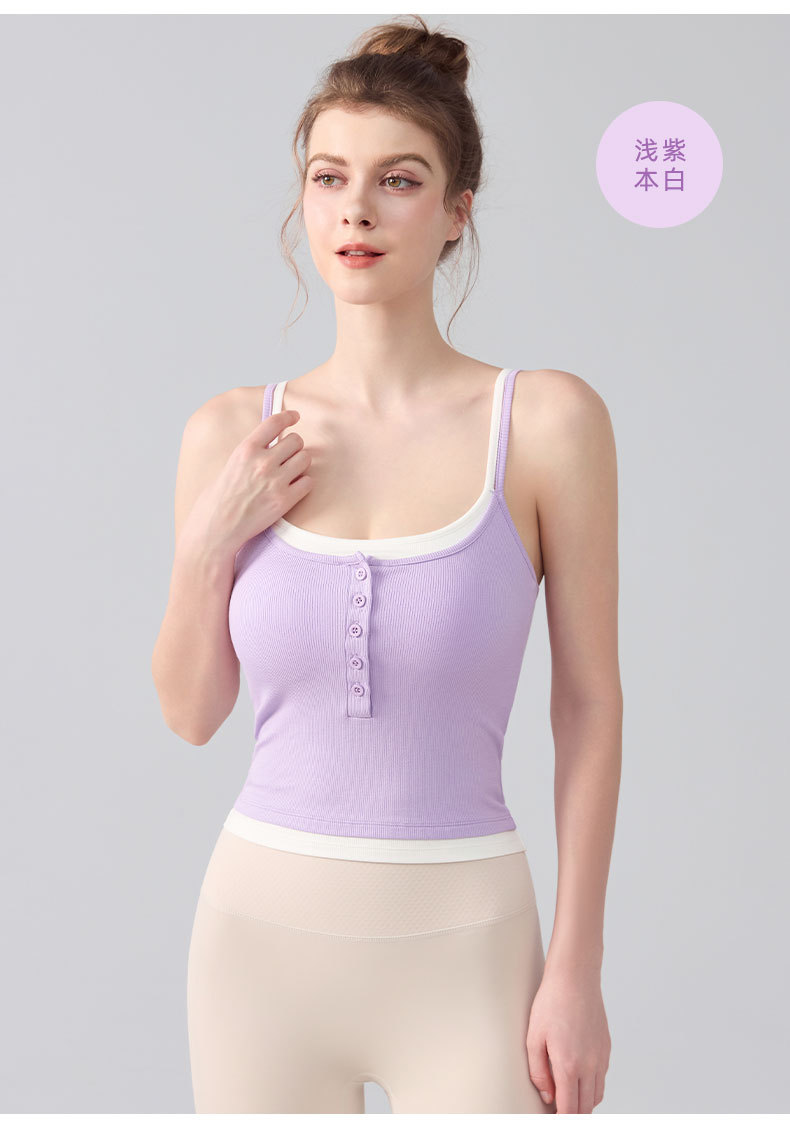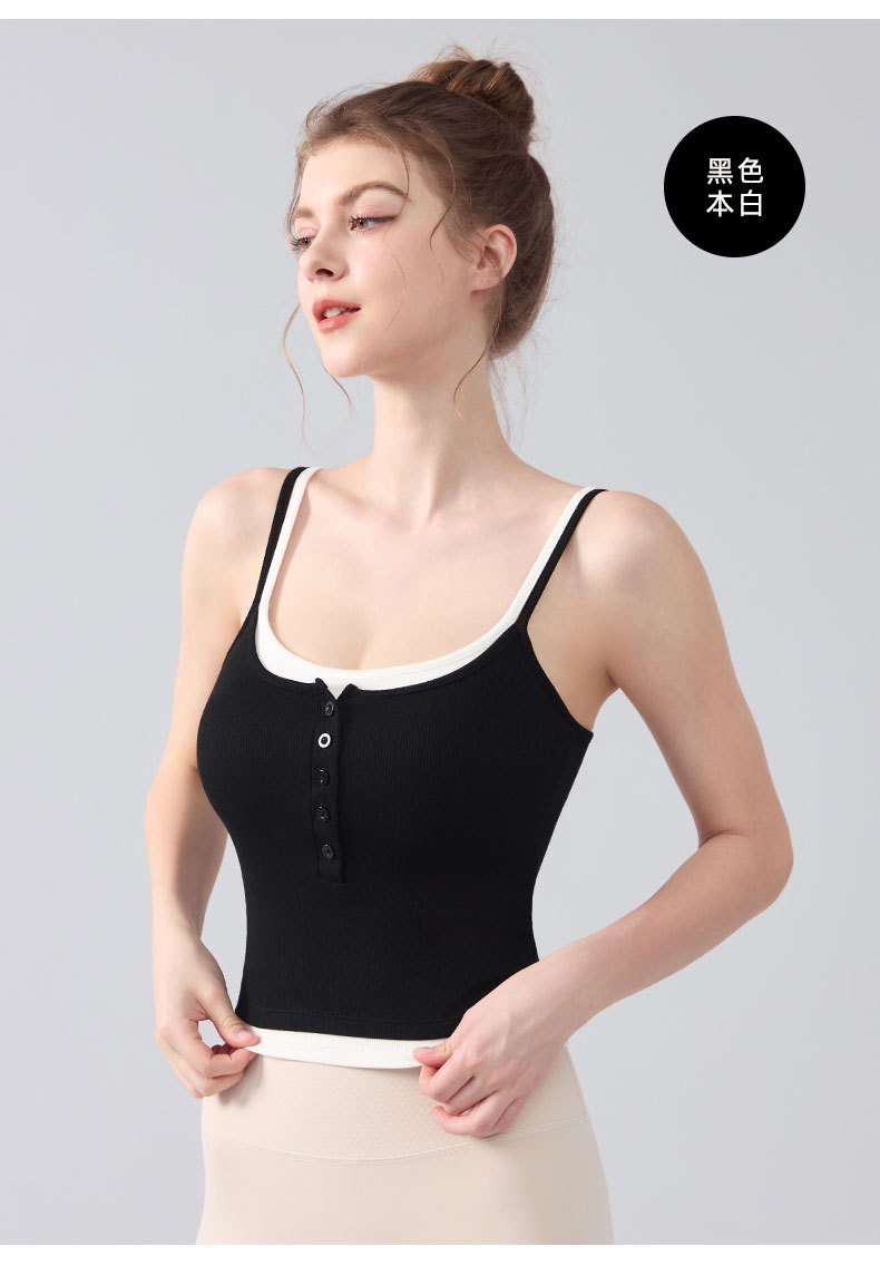 가슴 패드가 있는 여성용 페이크 투피스 요가탑, 원피스 컬러 블록 바닥 캐미솔, 캐주얼 피트니스웨어스토어 가기