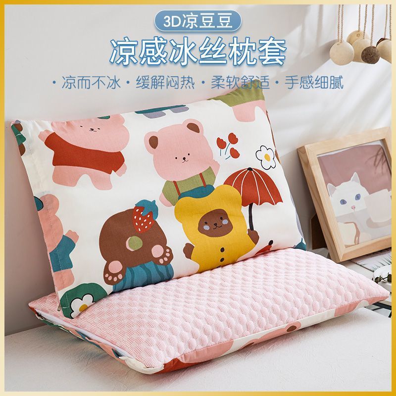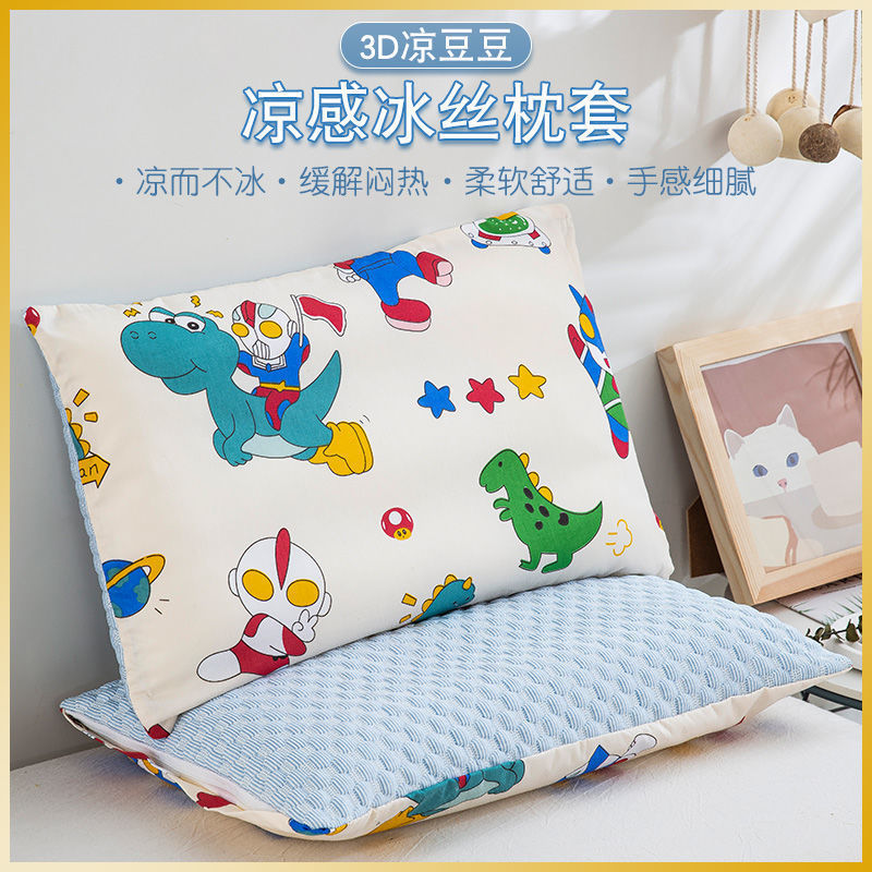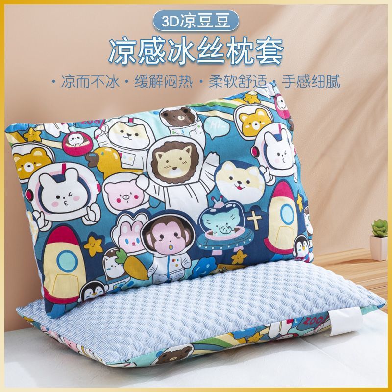 어린이 여름 시원한 콩 베개 커버 유치원 만화 귀여운 지퍼가 달린 순수 면화 초등학생 베개 커버스토어 가기