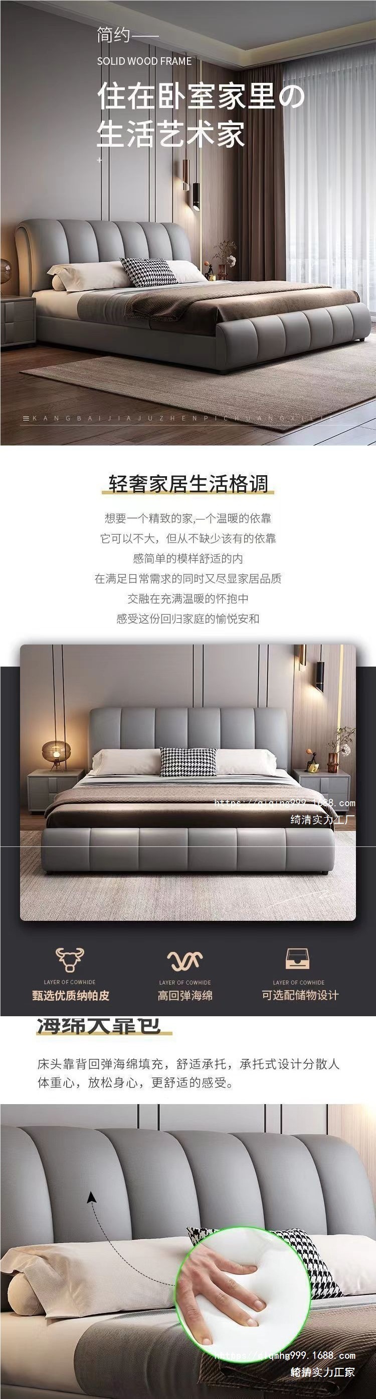 • 가죽 침대 + 9D 라텍스 매트 + 더블 캐비닛
