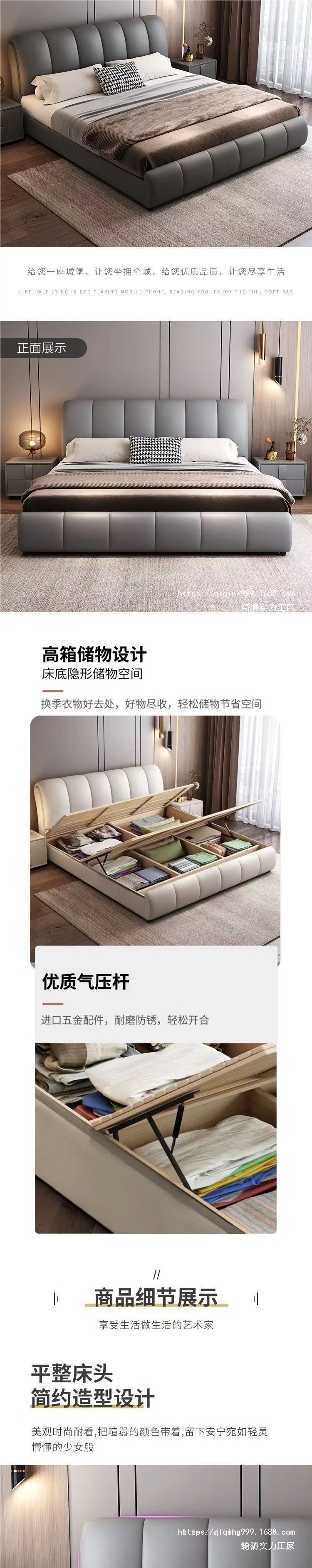 라이트 럭셔리 침대 마스터 침실 1.8m 더블 침대 모던 심플 1.5m 수납형 가죽 아트 침대 새로운 웨딩 침대스토어 가기