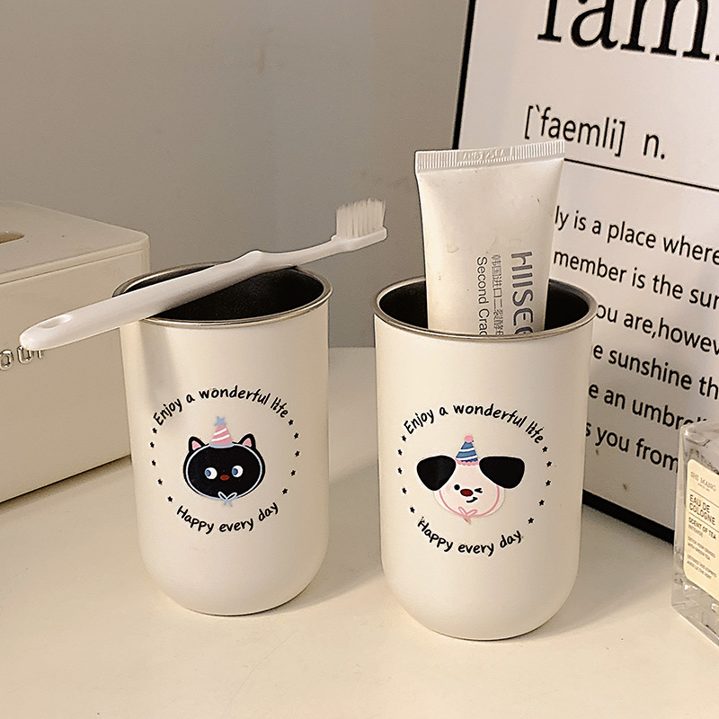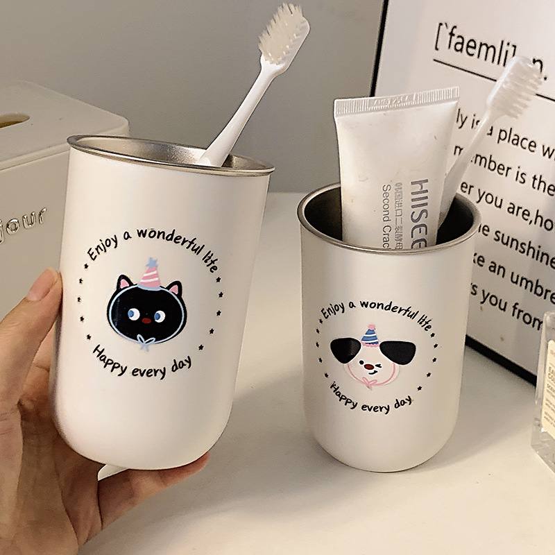 3인 가족을 위한 오리지널 만화 어린이 칫솔 컵, 커플을 위한 가벼운 고급 칫솔 컵, 욕실 스테인레스 스틸 구강 세척제 컵스토어 가기
