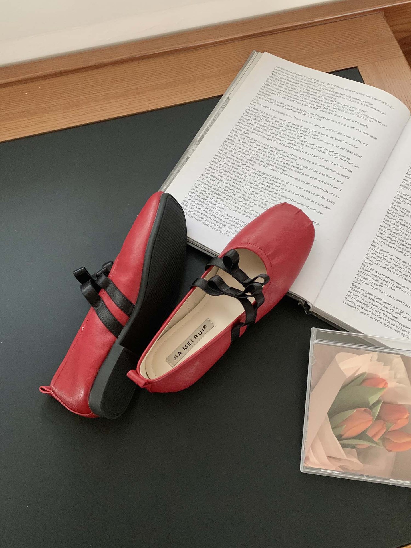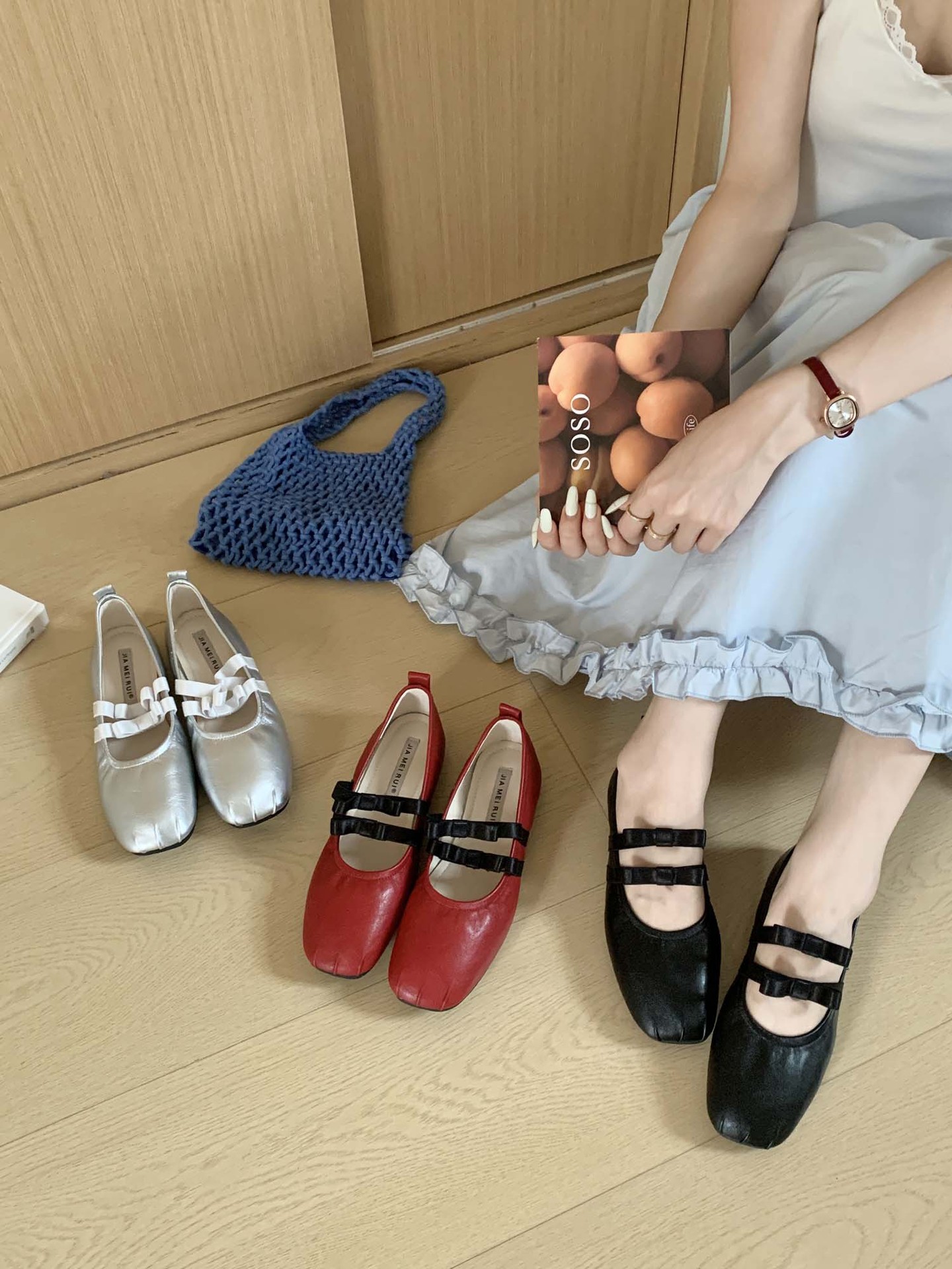 2025년 여름 신상 프렌치 메리제인 슈즈, 더블 보우, 스퀘어 토, 얕은 입술, 스커트와 어울리는 플랫 슈즈스토어 가기